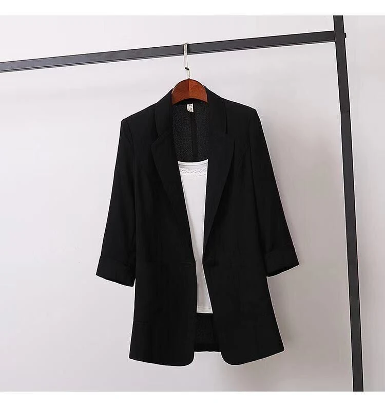 Женский Тонкий Блейзер из хлопка и льна, черный облегающий повседне...