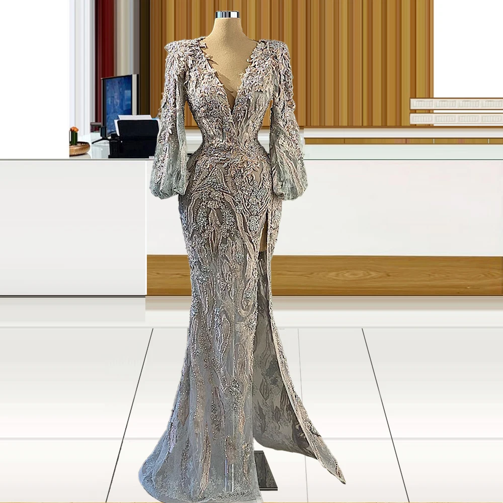 С длинным рукавом Женские вечерние платья со шлейфом одежда Знамени...