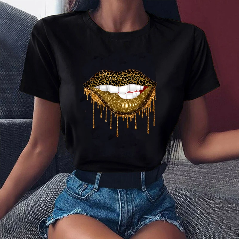 Летняя модная футболка с леопардовым принтом губ, женские топы в стиле Харадзюку, футболка с круглым вырезом, забавная футболка для девочек с поцелуем губ, 4 вида цветов