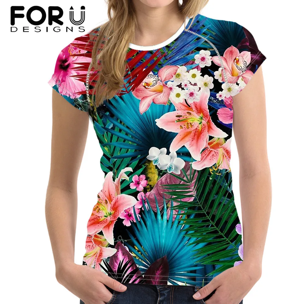 Новая модная женская футболка FOURDEIGNS 2018 с цветочным принтом ш...
