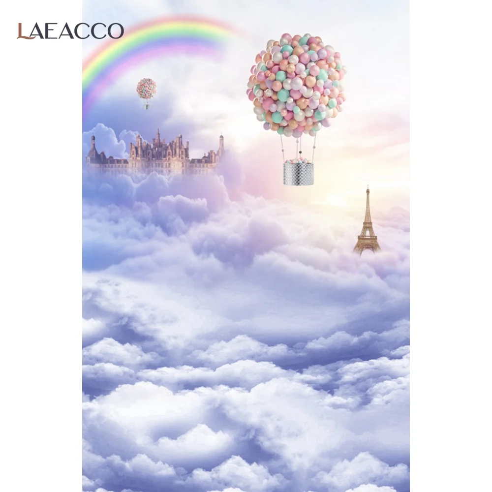 Laeacco детский день рождения мечтательный фон небо замок воздушный шар Радуга ребенок новорожденный индивидуальный плакат фотографический фон