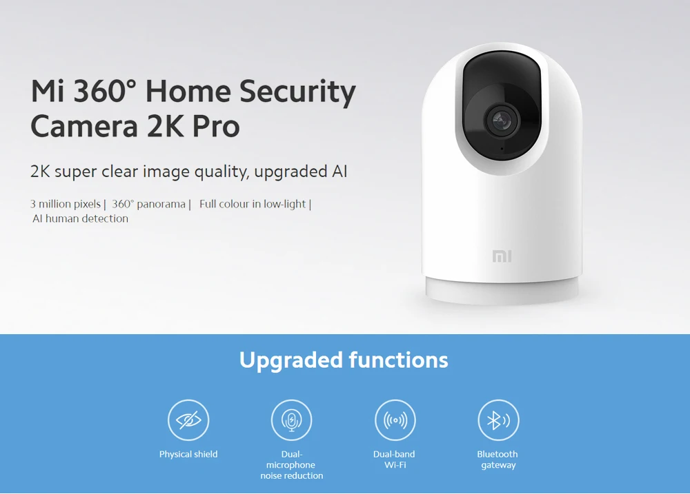 Mi 360 ° домашняя камера безопасности 2K Pro обновленная 3 mi llion пикселей, разрешение до 2304 × 1296, для четкости в каждом кадре.