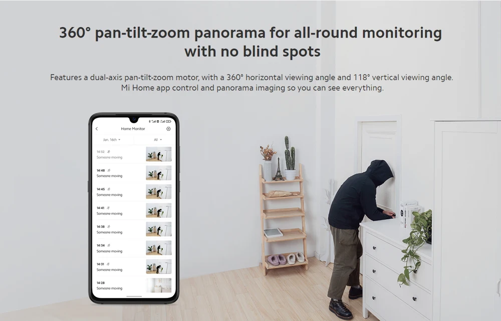 Домашняя камера безопасности Mi 360 ° 2K использует сверхчеткую технологию HD для съемки более подробных изображений. Наслаждайтесь улучшенным визуальным опытом с полностью модернизированной технологией 2K ultra-clear HD.