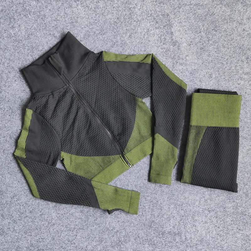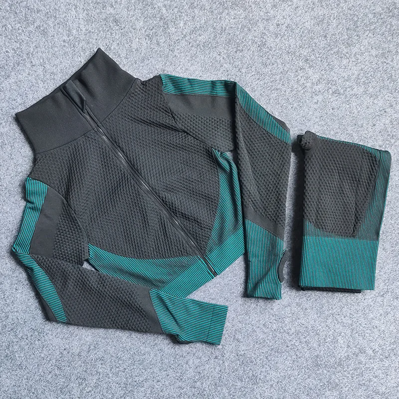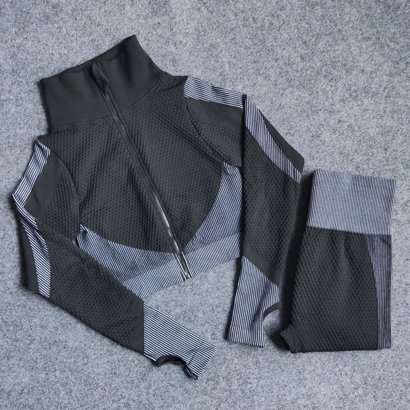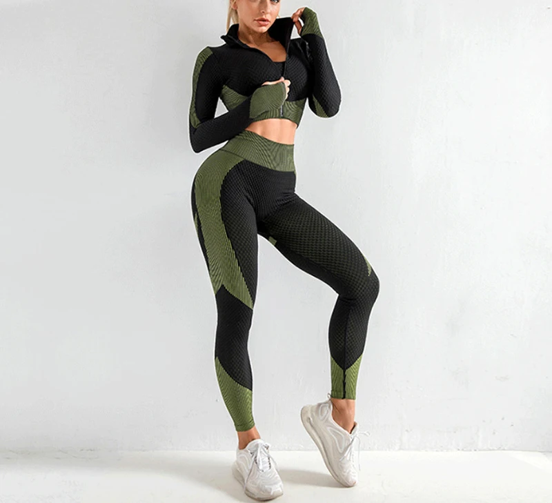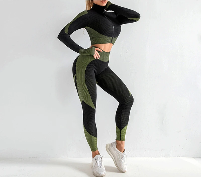 Фитнес костюмы женские йоги тренажерного зала, комплекты рубашка с длинными рукавами + спортивные наборы для ухода за кожей бесшовные леггинсы для бега Спортивная одежда для женщин