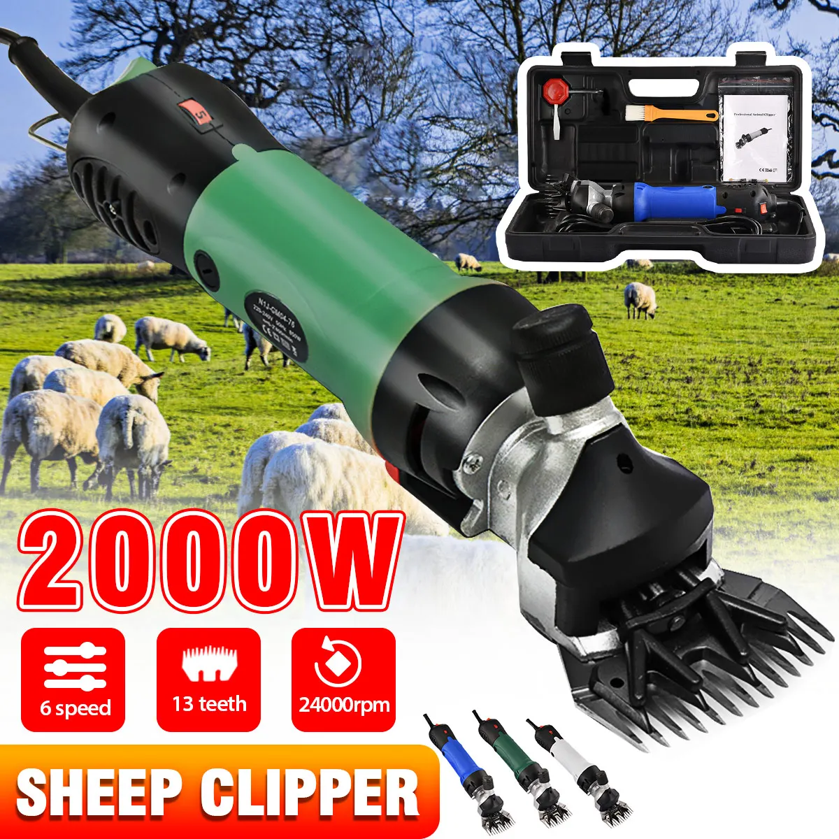 Посылка включает:1х обрезная машина с 13 зубчатыми лезвиями и линией1x Чистящая Щетка1x чехол для транспортировки и хранения1x отвертка для стрижки1x руководство по эксплуатации2x пружинаХарактеристики:Материал: корпус из алюминиевого сплава, пластиковый фюзеляжНапряжение: 220 В (вилка европейского стандарта), 110 В (вилка стандарта США)Мощность: 2000 Вт (макс.)Скорость резания: 24000 об/минШирина лезвия: 7,6 смДлина машины: 35 смДлина линии: 300 смОбъем лезвия: выше: 4, ниже: 13Вес нетто: 1,86 кгПосылка Размеры: 51x44,5x21,5 смОсобенности:* Изготовлен из пластика и алюминия, прочный и прочный, никогда не ржавеет* Скорость регулировки, 6 режимов скорости, легко сдвигать различные шерсти.* Сильная мощность, но очень тихая и низкая вибрация.* Специально разработанный наконечник лезвия, который не повредит овец.* Компактная структура, эстетически приятная и с длинной линией 5 метров, более простая в эксплуатации.* Прохладная температура при длительной эксплуатации, легко доходит до животных.* Идеально подходит как для отдельных овец изюма или коллективного вырезывания