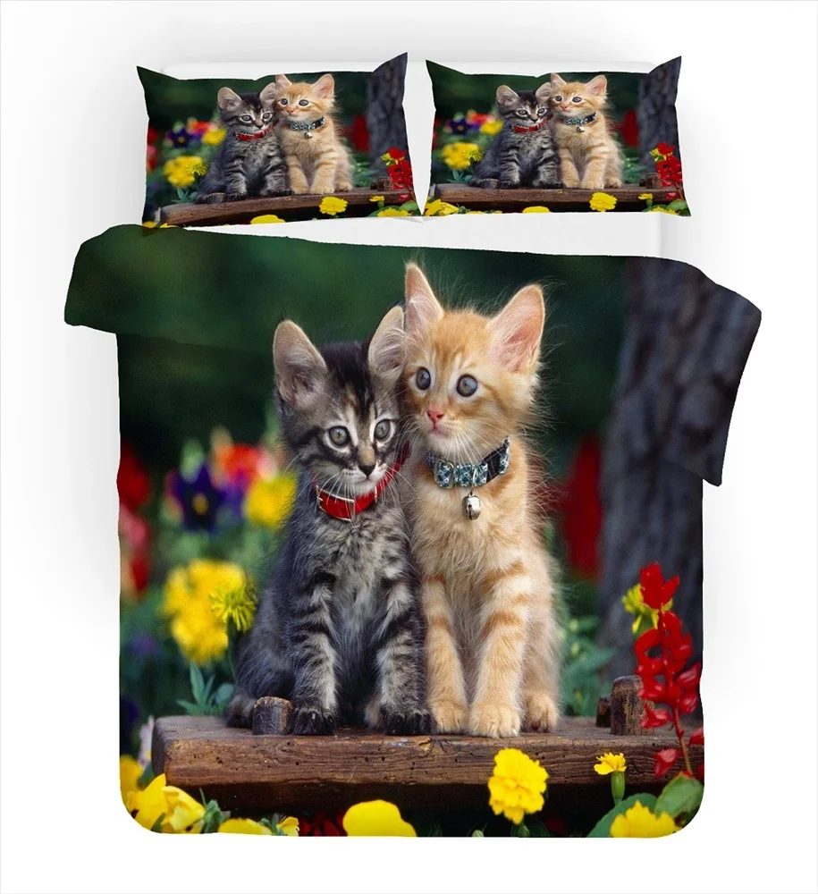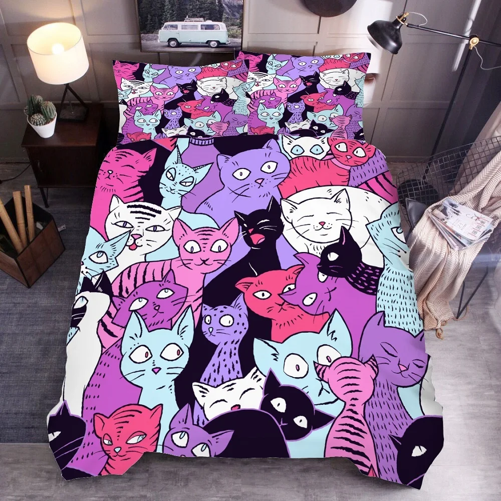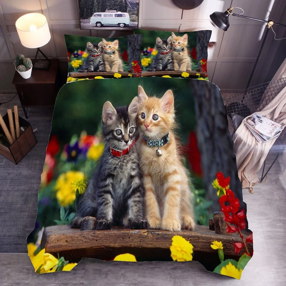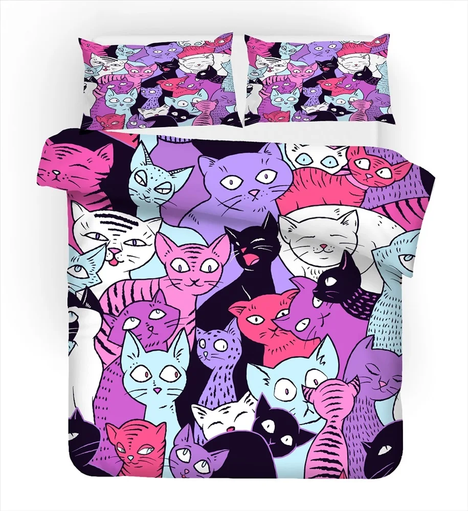 Детское постельное белье для спальни с мультяшными кошками, комплект пододеяльников, милый комплект постельного белья для домашних животных, двойное покрывало, Королевский, двойной кровати, декор для девочки, подарок, 3 шт.