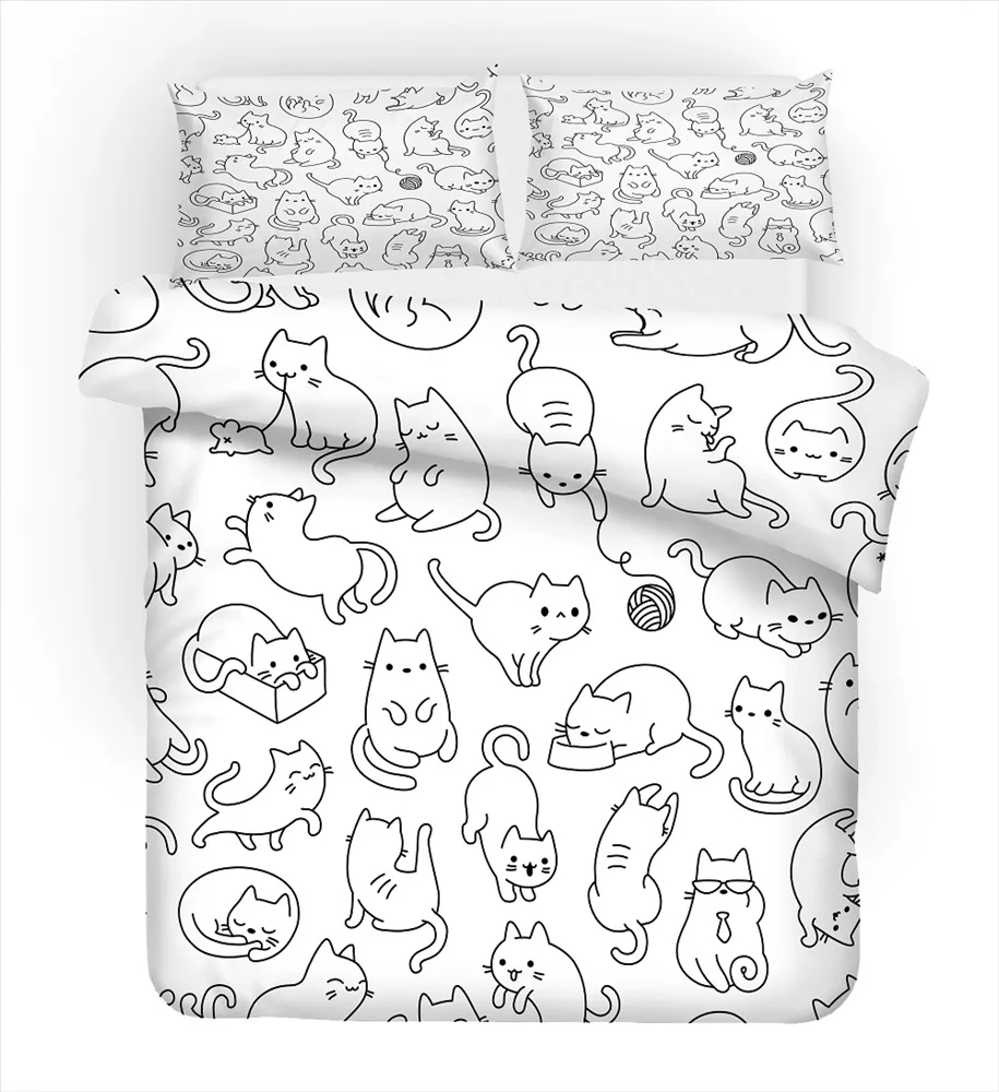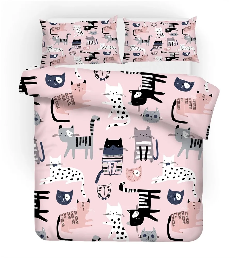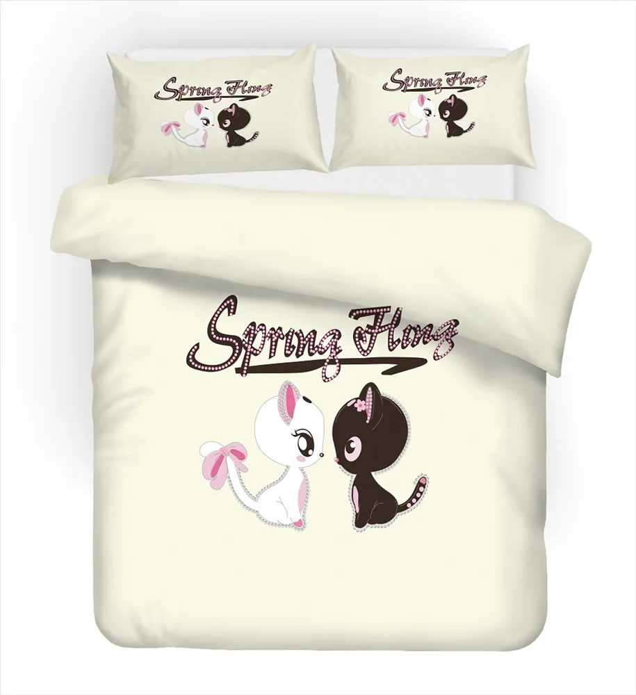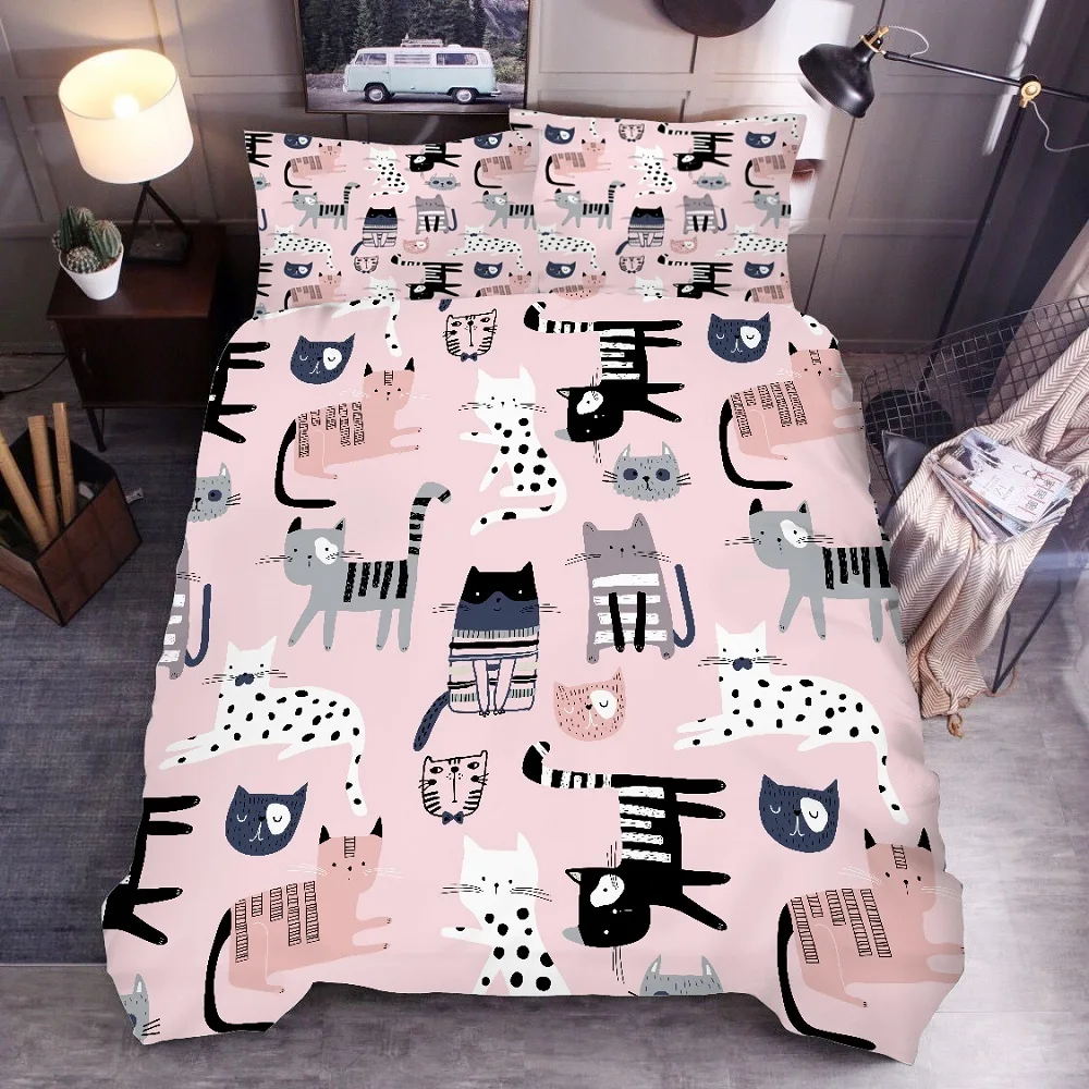 Детское постельное белье для спальни с мультяшными кошками, комплект пододеяльников, милый комплект постельного белья для домашних животных, двойное покрывало, Королевский, двойной кровати, декор для девочки, подарок, 3 шт.