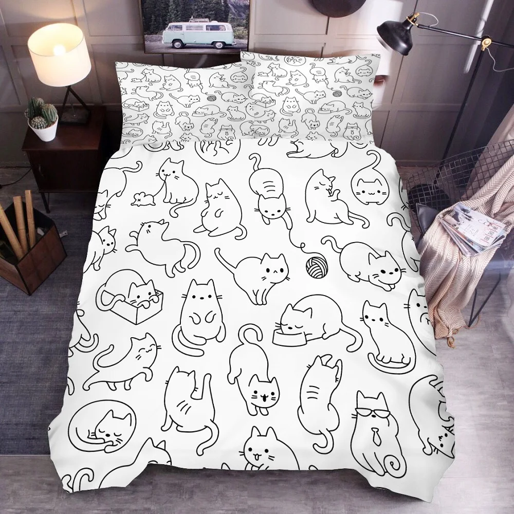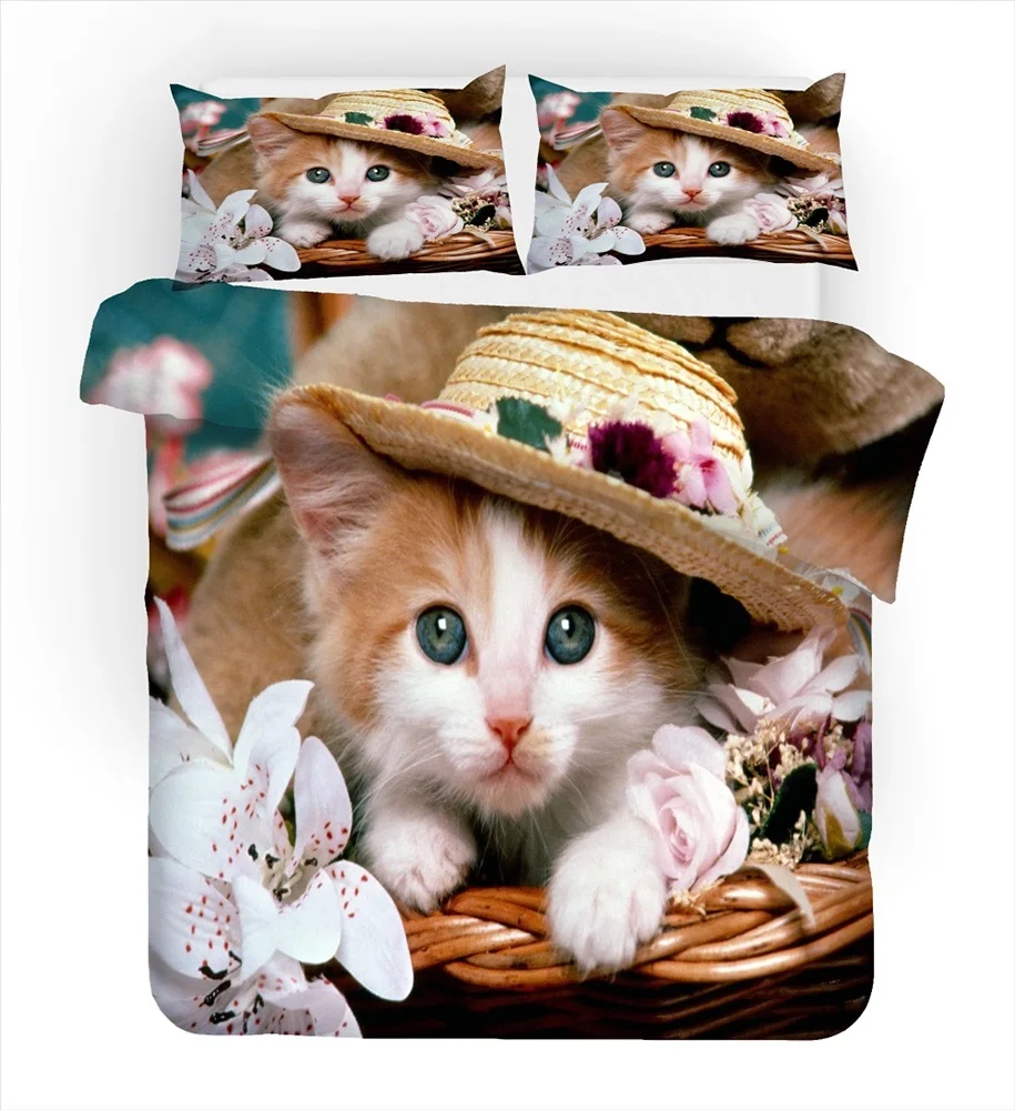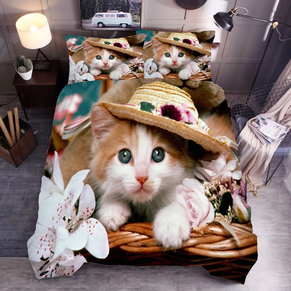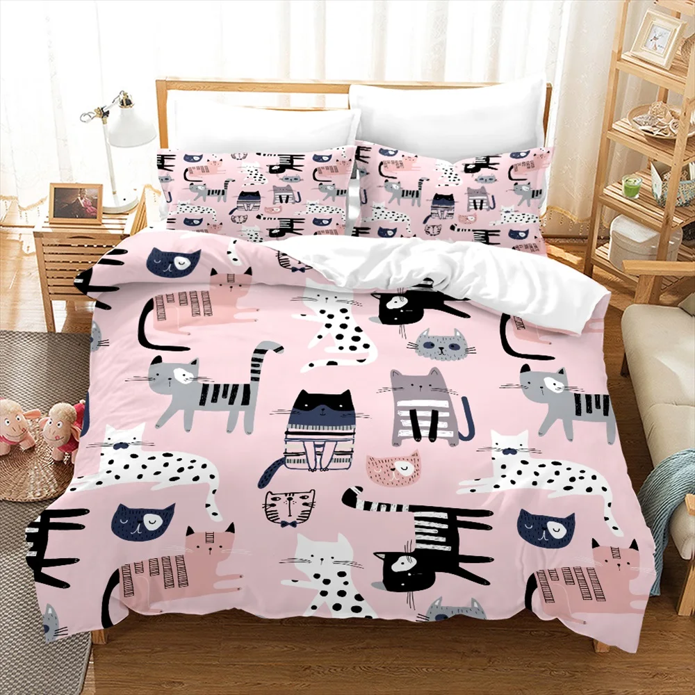 Детское спальное постельное белье с рисунком кошки, набор пододеяльников, милое одеяло для питомца, покрывало для близнецов, полная королева, король, двойная кровать, декор для девочки, подарок, 3 шт.