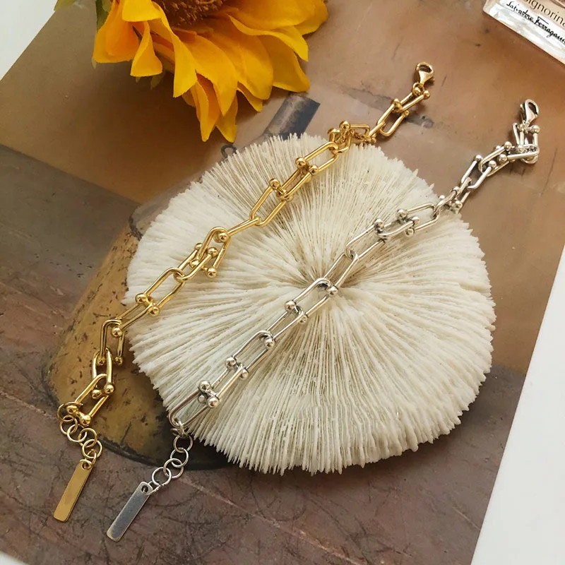 Модные U-образные цепочки, золотыесеребряные браслеты для женщин и ...