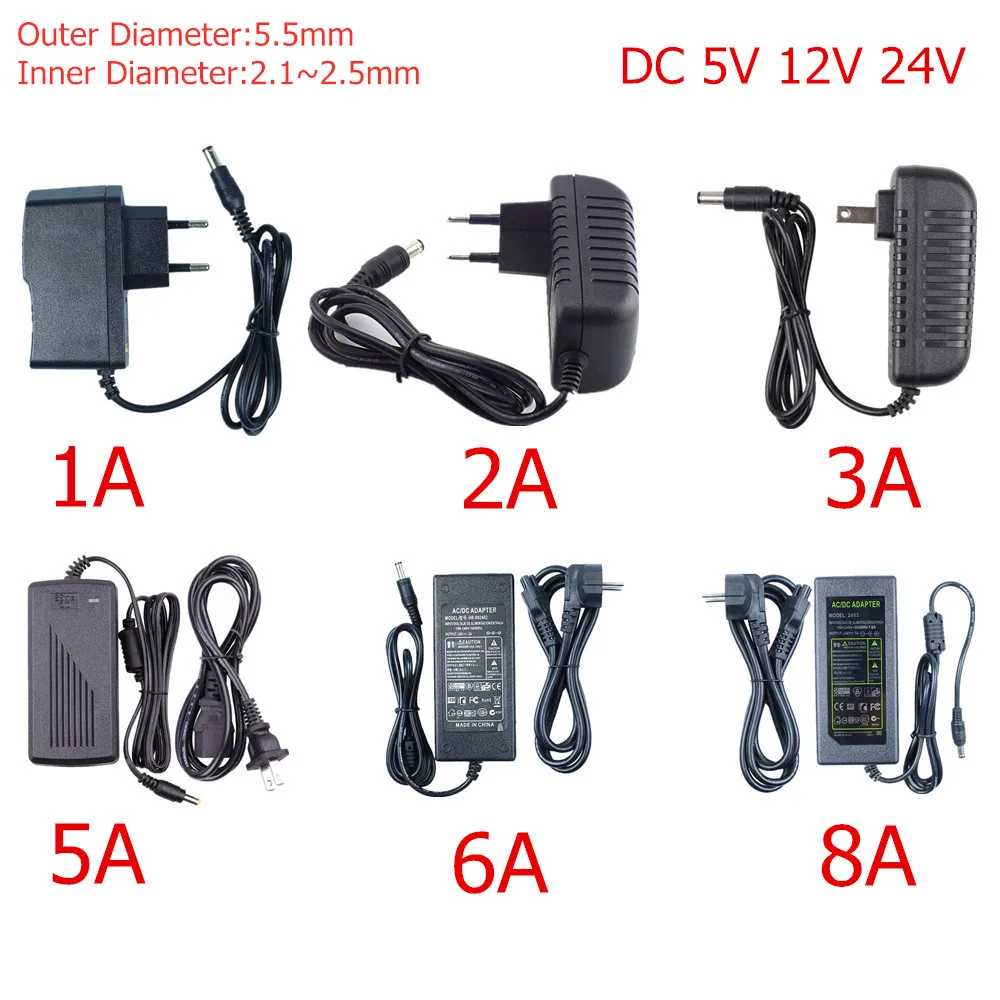 Адаптер питания, 2,1 мм * 5,5 мм, 5 В, 12 В, 24 В постоянного тока, адаптер зарядного устройства, 1 А, 2 А, 3 А, 4 а, 5 А, 6 А, 8 А, 10 А, трансформатор освещения для светодиодной ленты системы видеонаблюдения