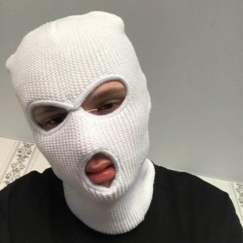3 отверстия вязаная полный уход за кожей лица Крышка маска три вязаная шапка в стиле милитари прочные CS Зимние перчатки для катания на лыжах, Спортивная Шапка-бини шарф Теплый маска для лица