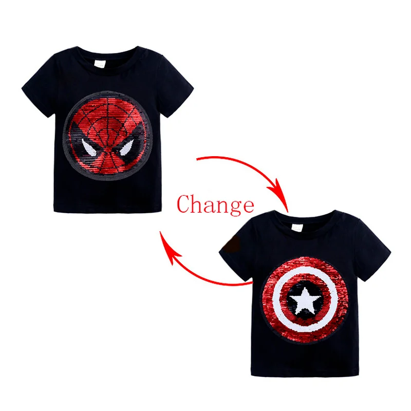 Детская футболка с коротким рукавом, двусторонняя рубашка с волшебн...