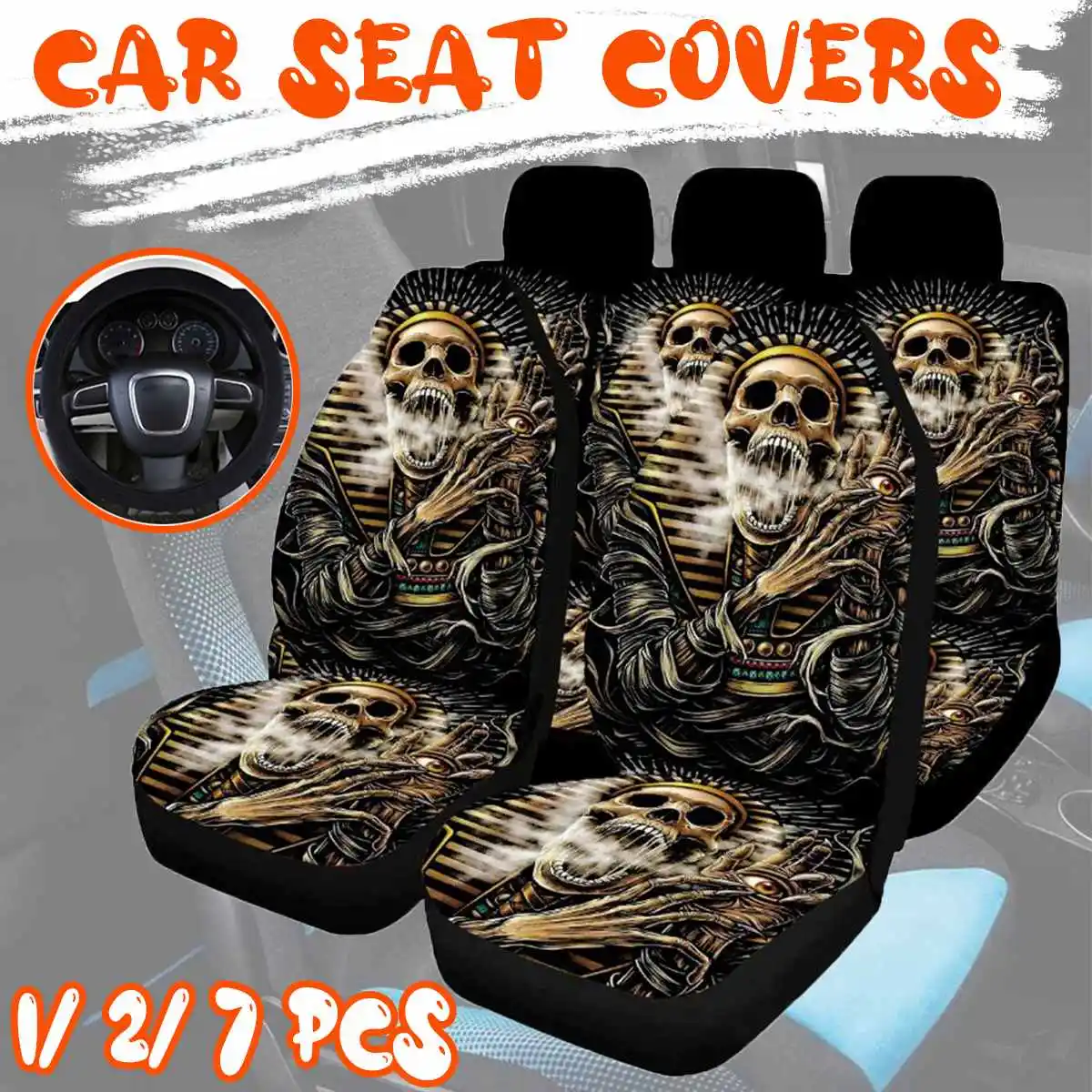 Комплект чехлов на сиденья автомобиля, 127 шт., Защитные чехлы для передних и задних сидений с 3D принтом черепа, для грузовиков, микроавтобусов, внедорожников