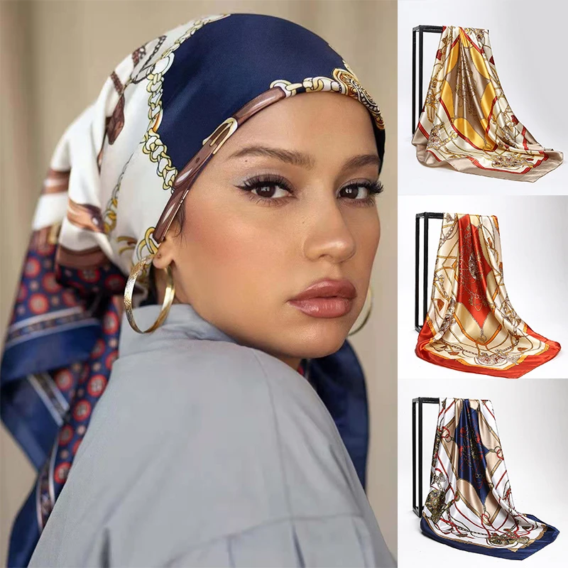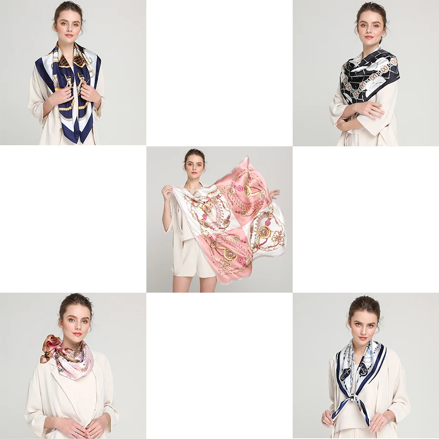 Для женщин роскошный шёлковый шарф квадратной формы 90*90 см сатин ...