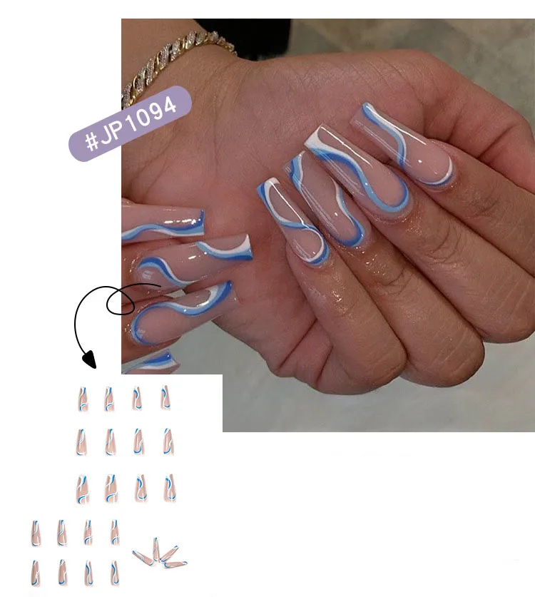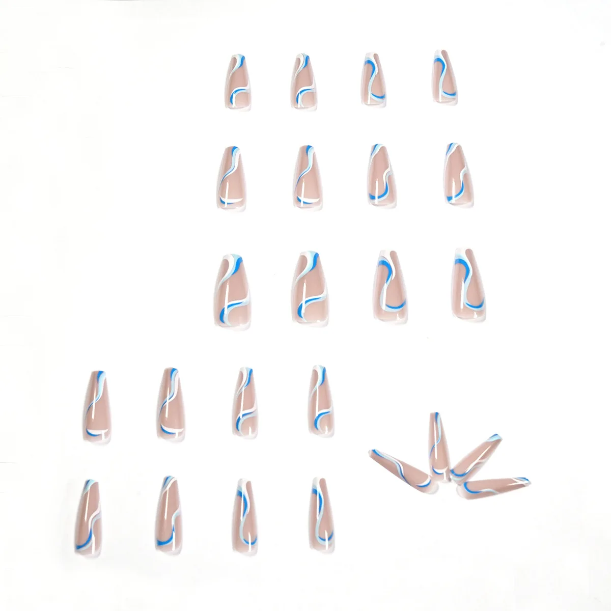 24 шт. волнистые линии синие и белые накладные ногти полное покрытие накладные клей для ногтей DIY Инструменты для маникюра ногтей