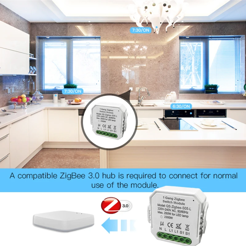 1. Этот умный модуль Tuya ZigBee 3,0 разработан специально с протоколом ZigBee 3,0, совместим с hub Tuya ZigBee (также поддерживается смарт-устройствами) для реализации всей связи вашего дома, действительно хорошая замена нестабильному Wi-Fi. Протокол ZigBee 3,0 с мини-дизайном для коробки ЕС/настенный переключатель стандарта Великобритании, И легко впишется в настенная коробка переключателей вашего традиционного переключателя без какого-либо влияния на ваш стиль украшения, чтобы сделать его умным, предоставление вашим устройствам максимального включения/выключения интеллектуального преобразования и преобразования большинства совместимых продуктов в интеллектуальные; Традиционный переключатель и этот умный модуль могут работать независимо без помех.
