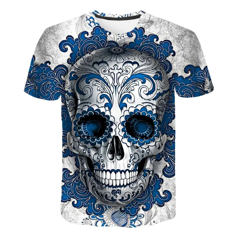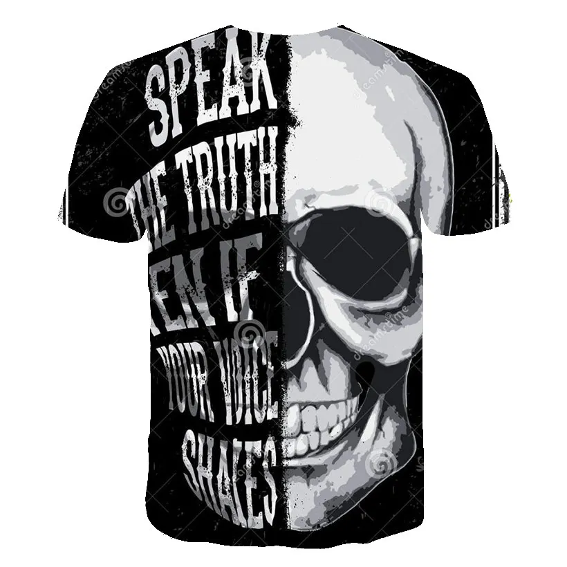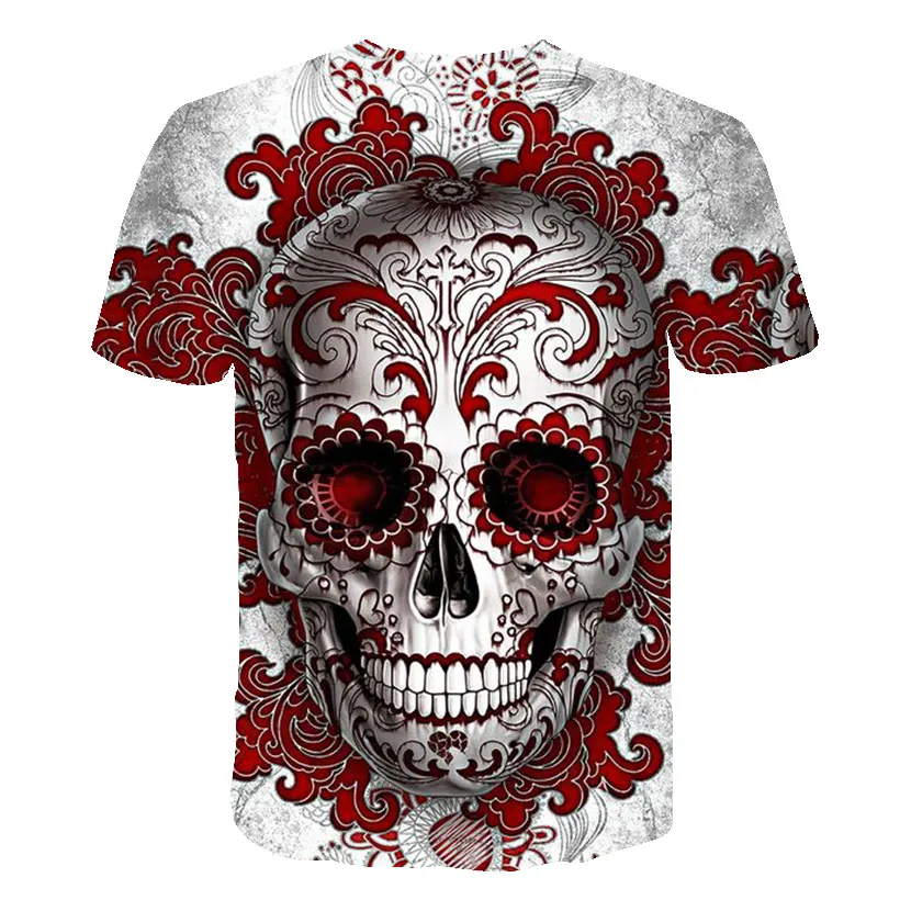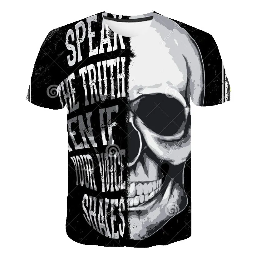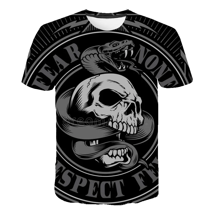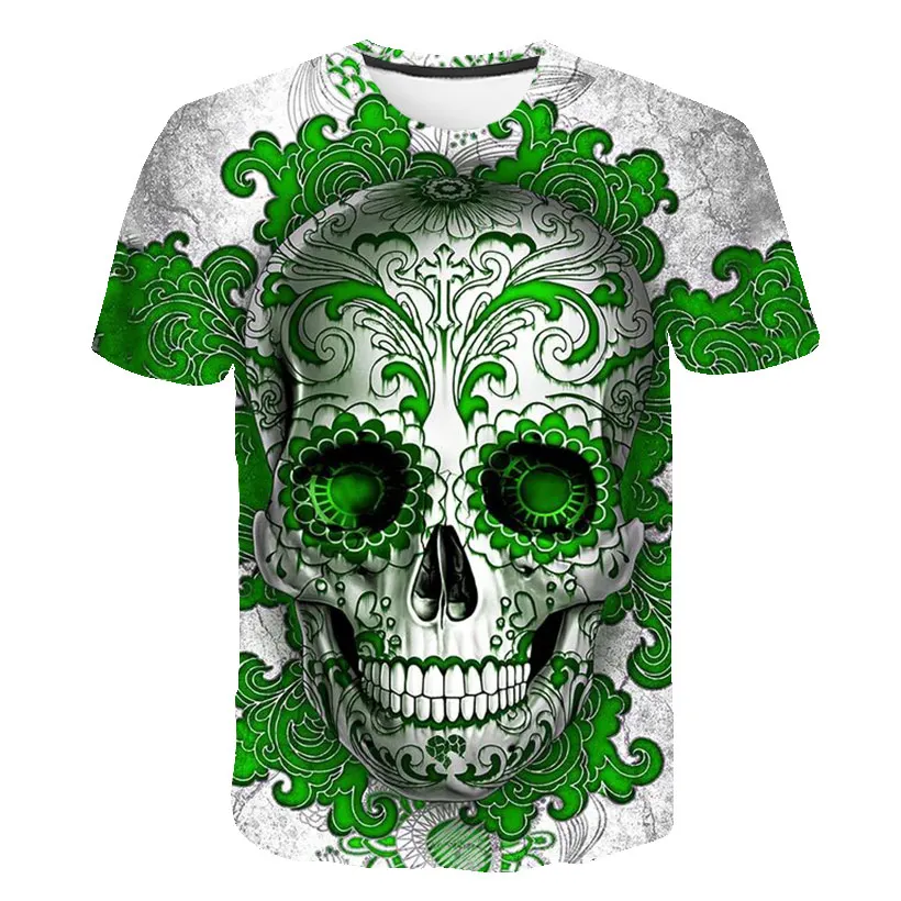 Футболка мужская с 3D принтом черепа, повседневная тенниска свободного покроя, с круглым вырезом