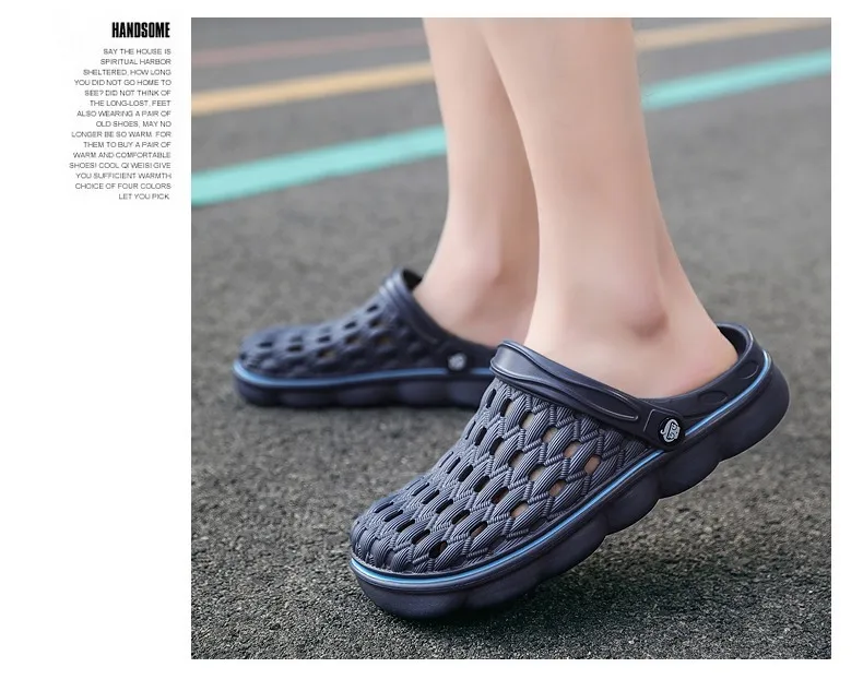 Сандалии мужские с перфорацией, классические пляжные шлепанцы, ПВХ, плоская подошва, для сада и пляжа, лето 2021