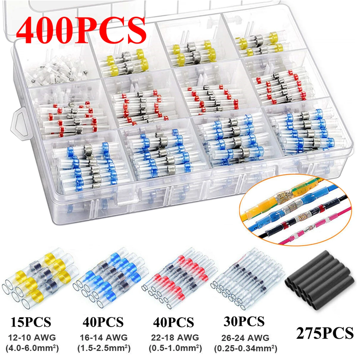 250/300/400/500/600/800 шт. комплект соединителей для припоя, термоусадочные стыковые соединители, водонепроницаемые и изолированные клеммы для электрических проводов