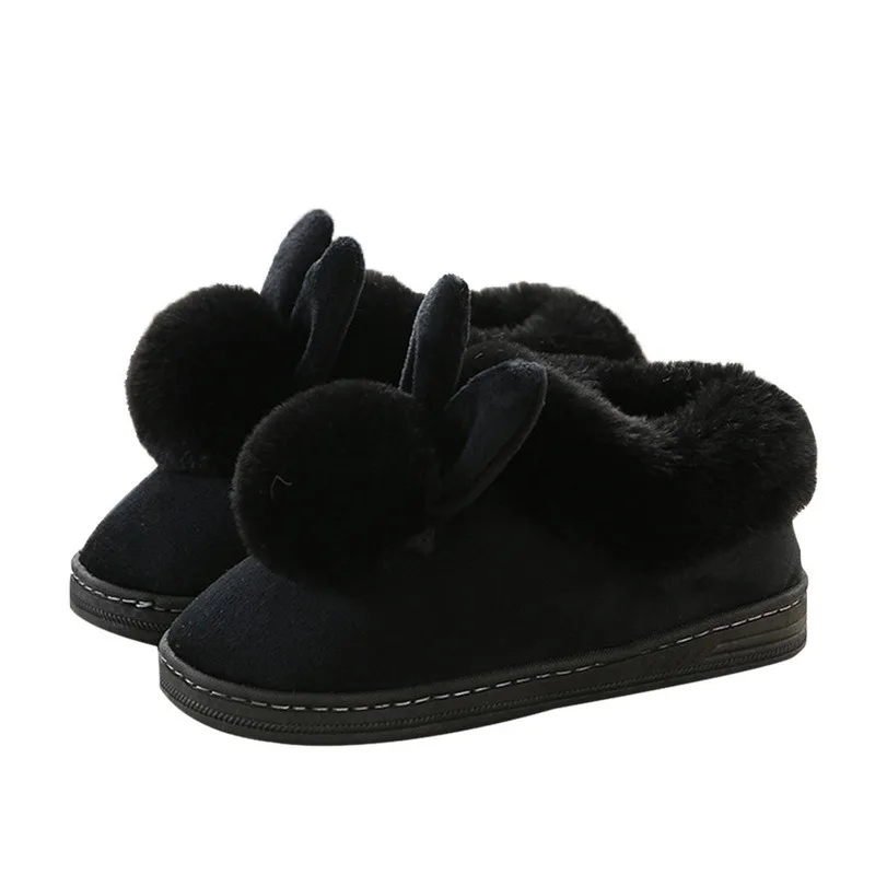 Зимние хлопковые тапочки, женские домашние тапочки с кроличьими ушк...