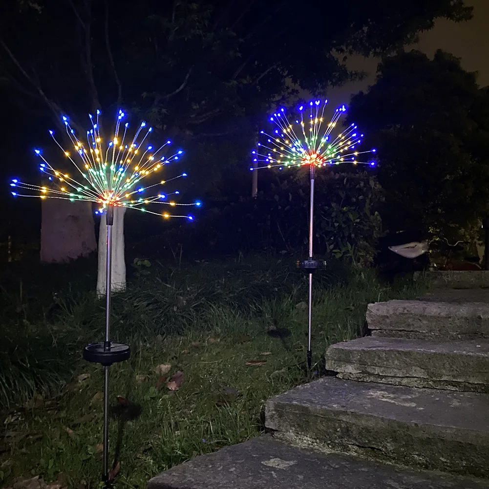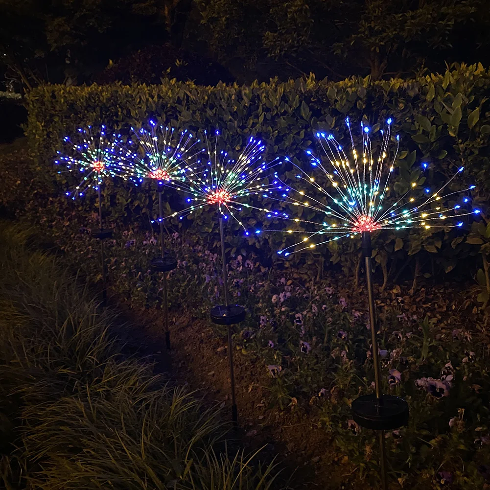 Гирлянда с солнечной батареей и фейерверками, уличный садовый фонар...