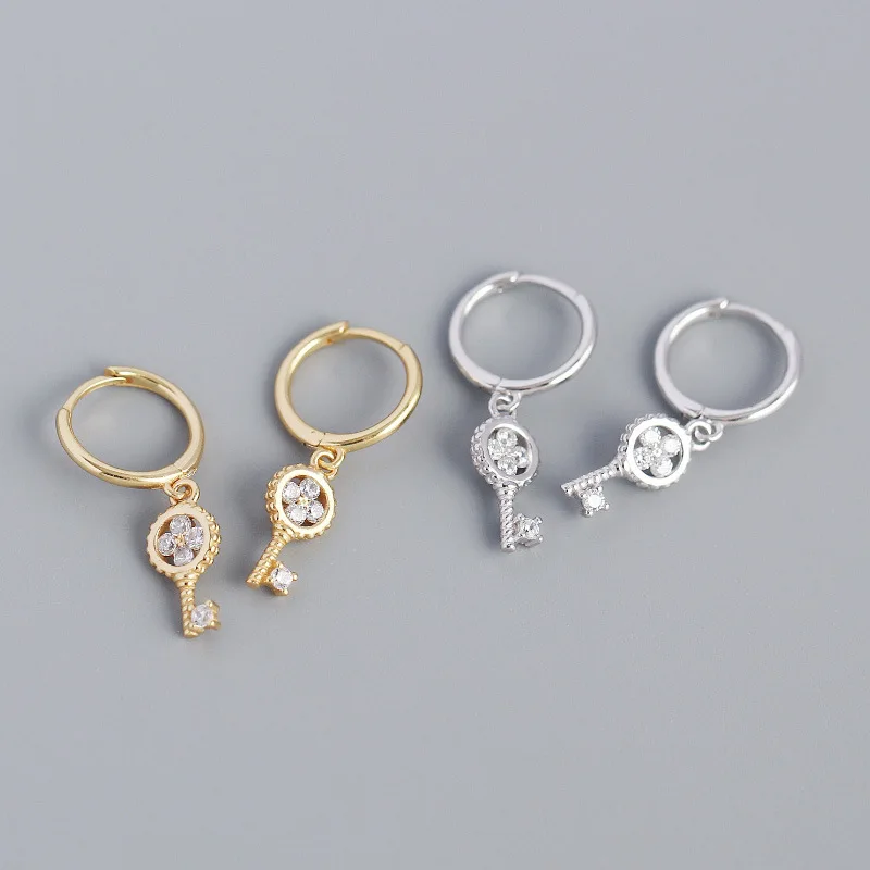 Product nameSimple Flower Key Zircon Hoop Earrings