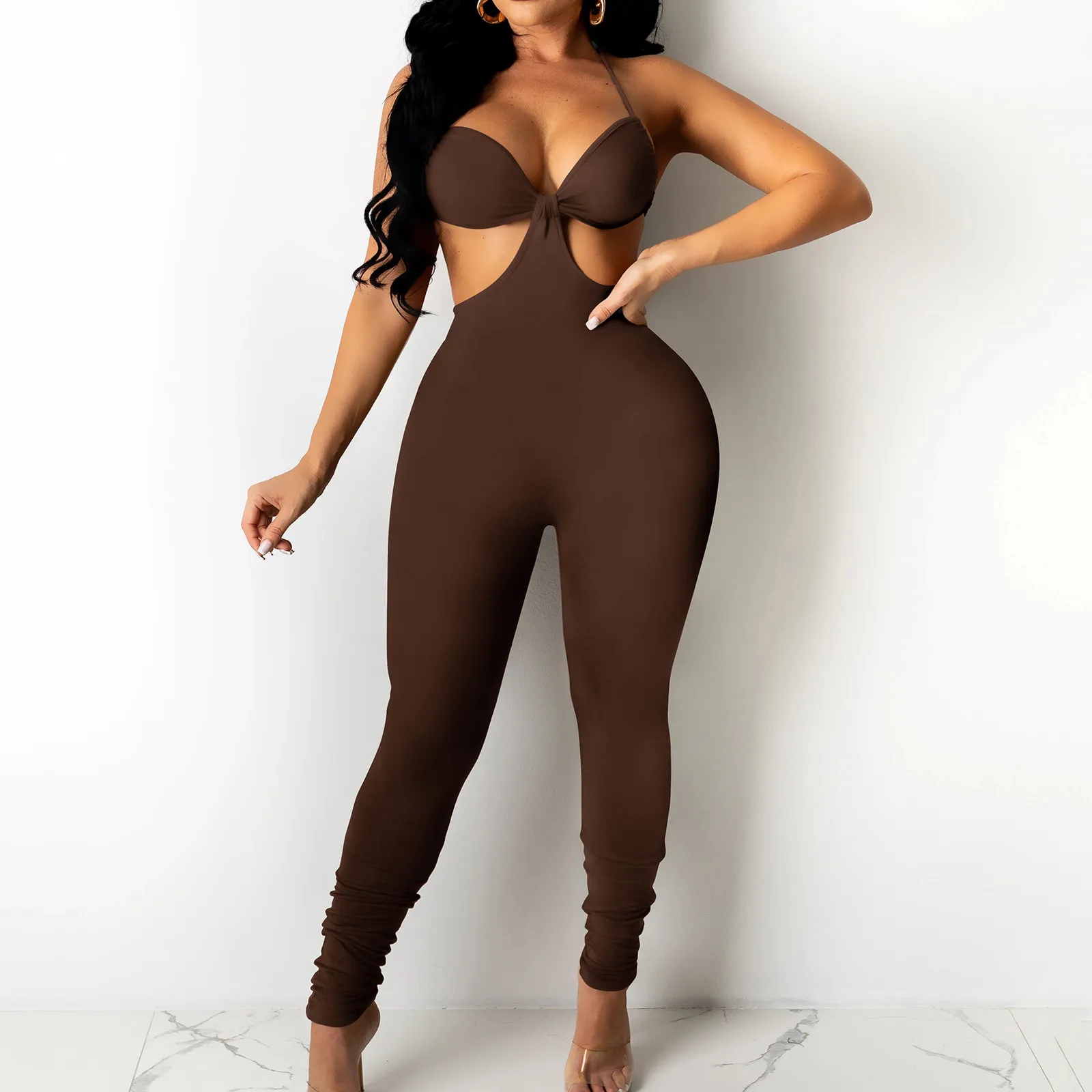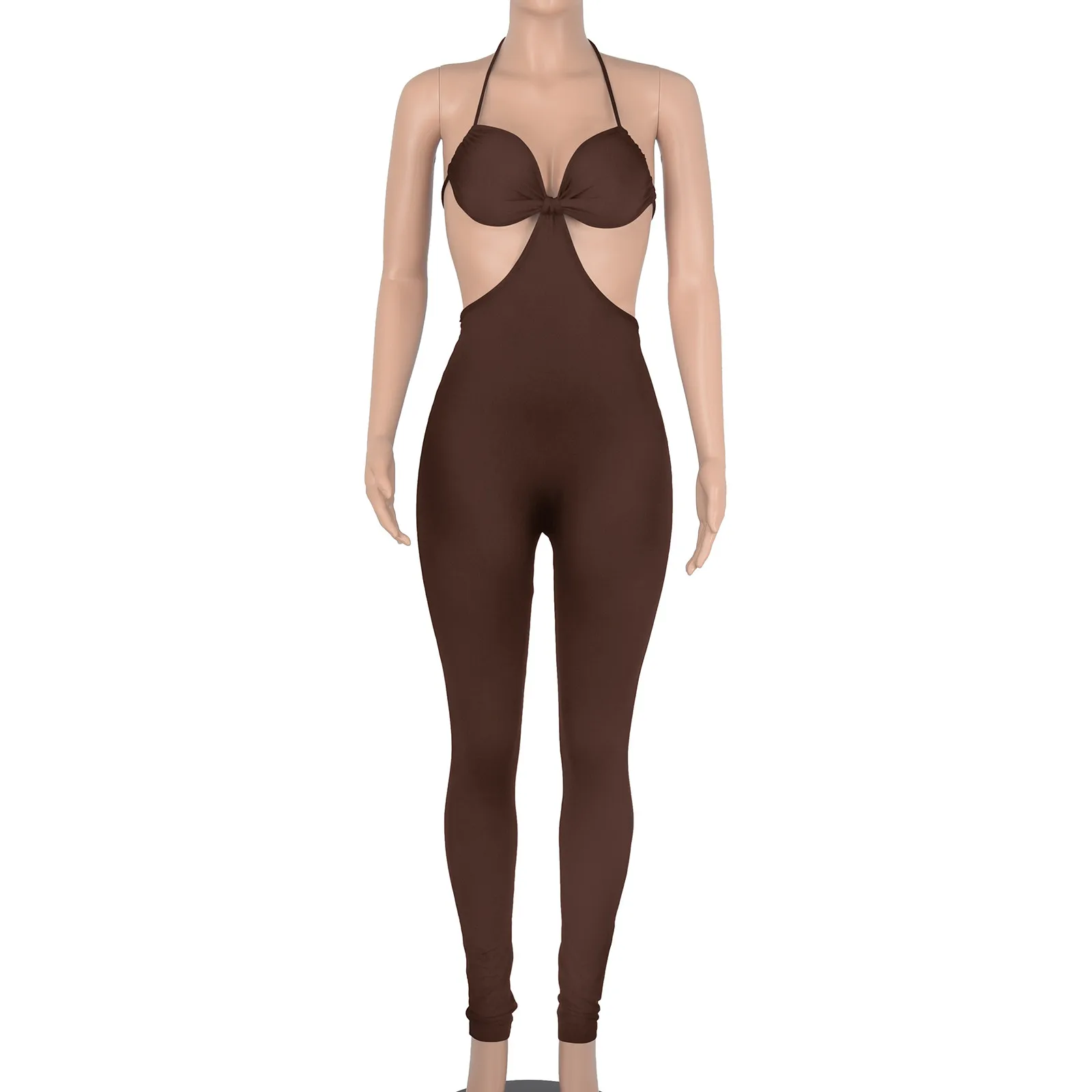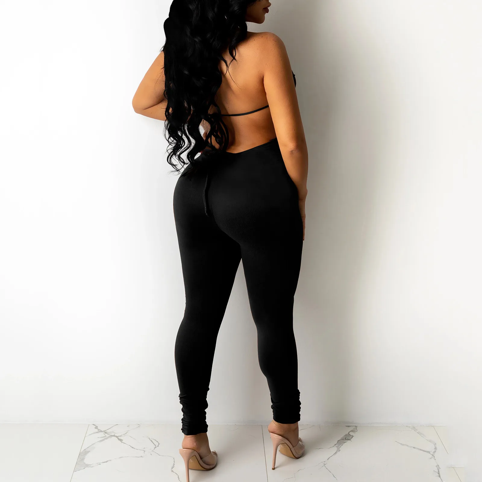 Однотонное облегающее платье с лямкой на шее Для женщин Длинные Комбинезоны узкие спинки комбинезон для занятий спортом Спортивная основной комбинезон Вечеринка комбинезоны 2021