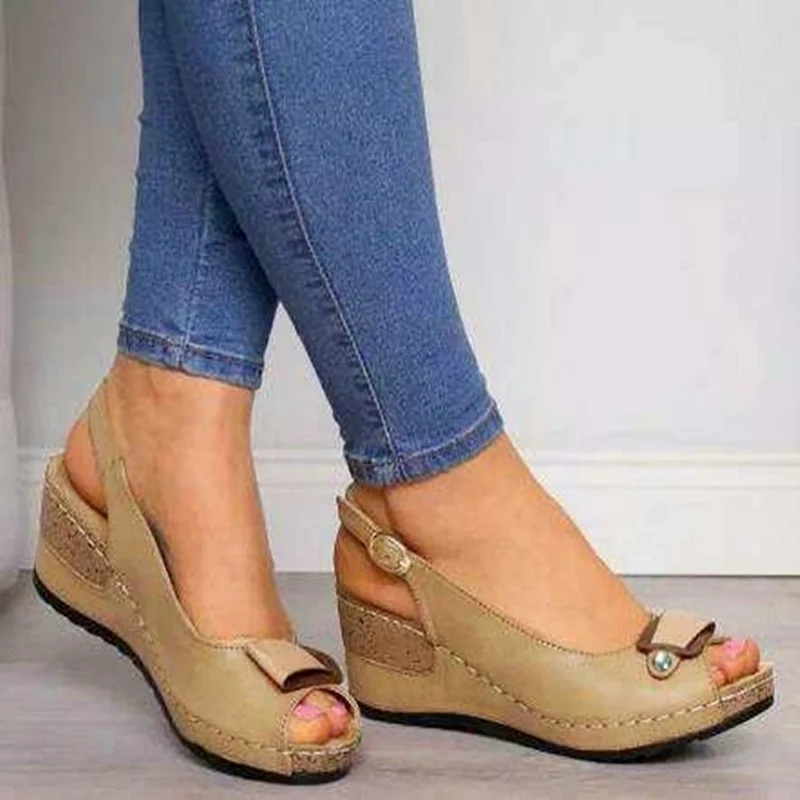туфли на толстом каблук Женские туфли на танкетке Женские сандалии на высоком каблуке, повседневные босоножки с ремешком и пряжкой с открытым носком, на платформе, в стиле ретро, большие размеры, лето 2022