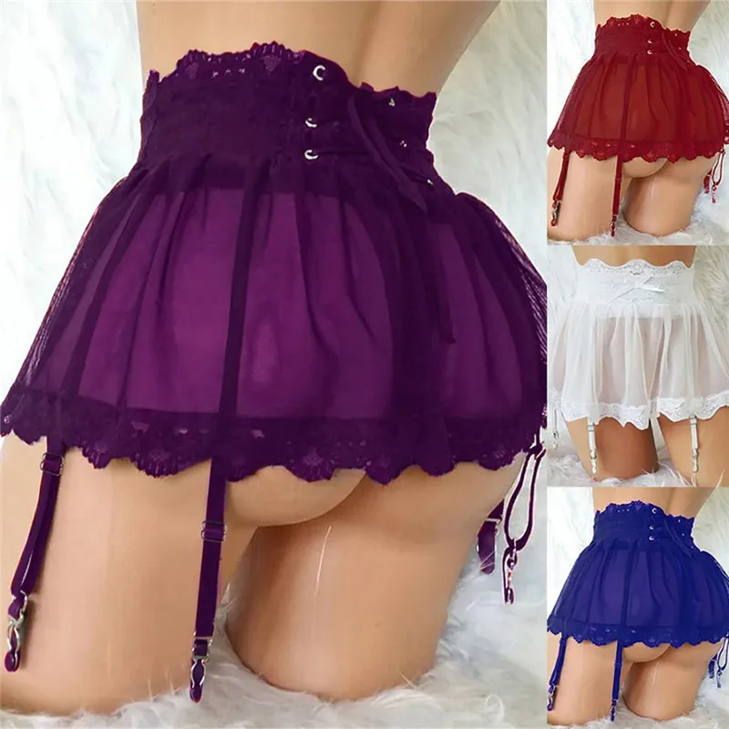 Сексуальная сетчатая мини-юбка, кружевное Бандажное нижнее белье, ж...