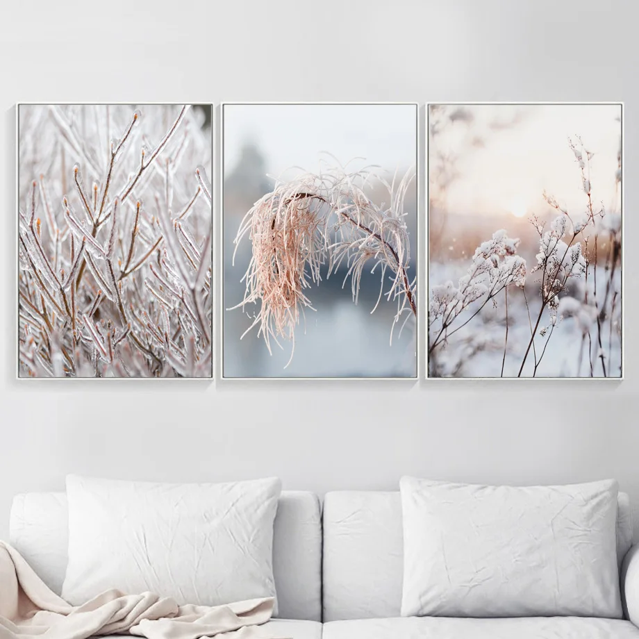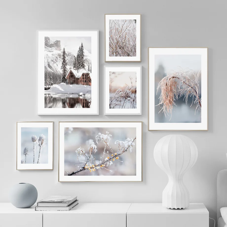 Настенная картина Снежная гора пейзаж на холсте зимний дом трава цветок скандинавский Декор плакаты домашняя Настенная картина