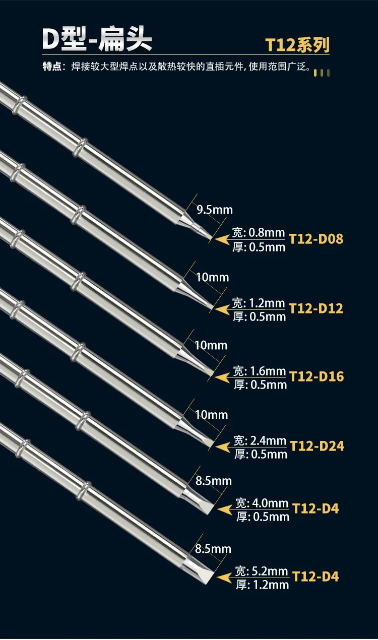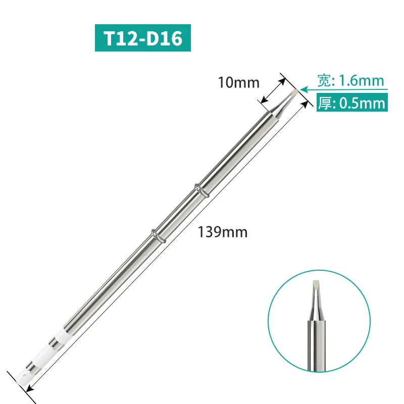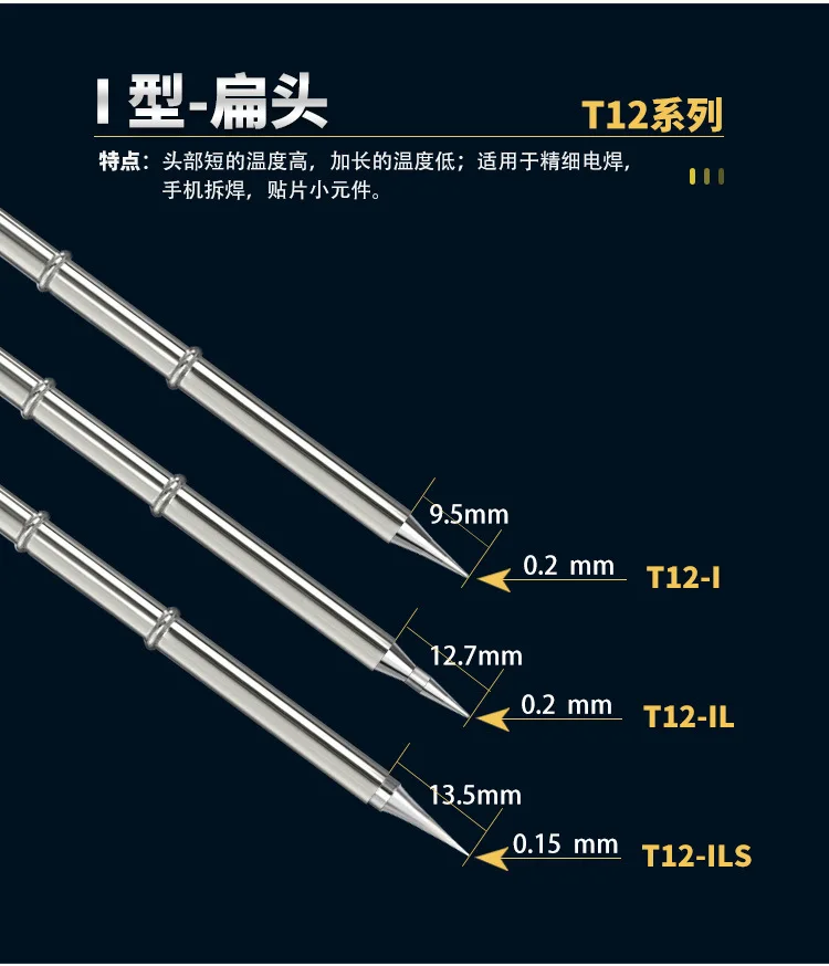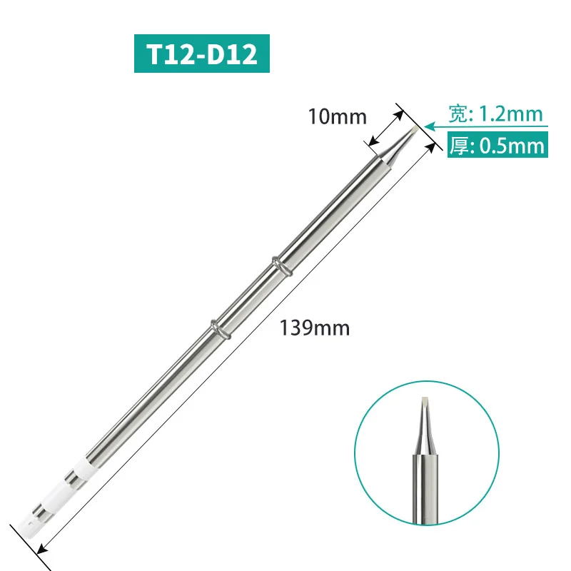 1. Паяльная головка T12-это Композитное сварочное сопло, которое является сочетанием нагревательного сердечника, датчика температуры и паяльной головки.