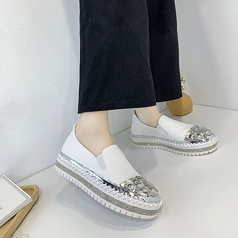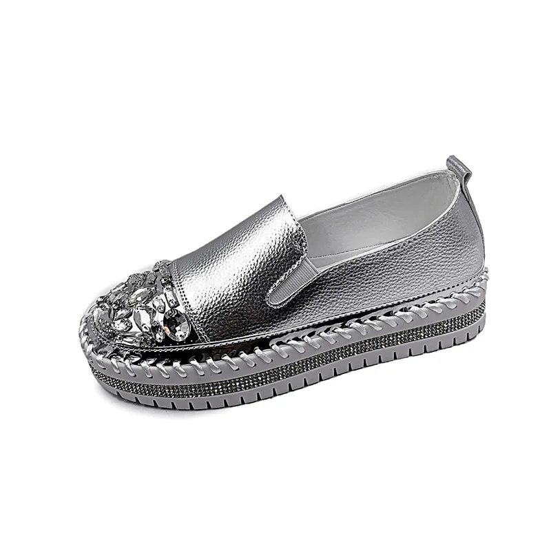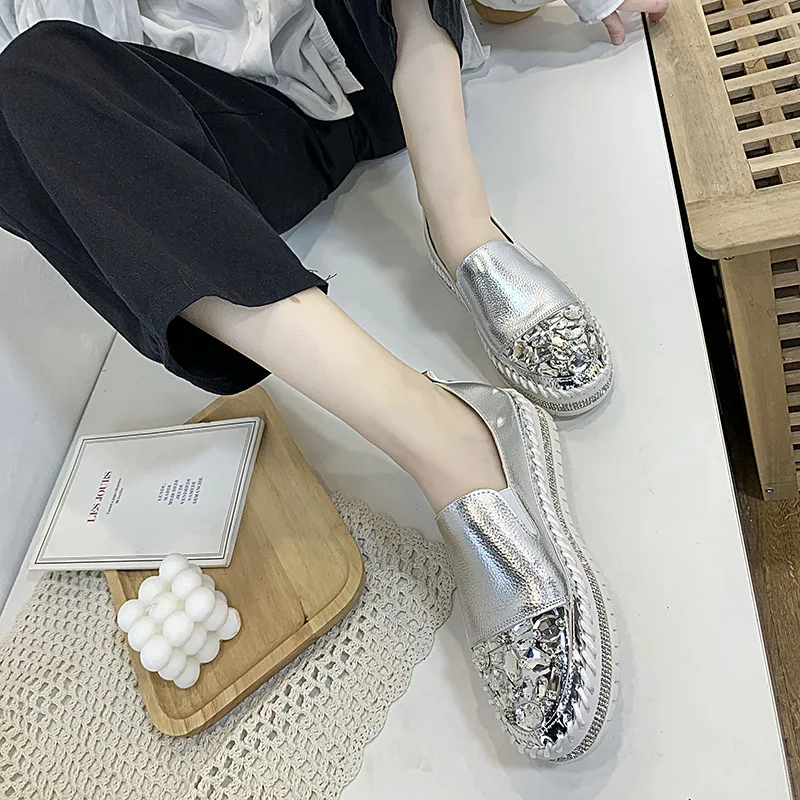 дутики женские 2021 обувь красовки женские Женские кожаные туфли на плоской подошве Comemore, серебристые блестящие лоферы, обувь на платформе без застежки, женские повседневные туфли на плоской подошве для студентов