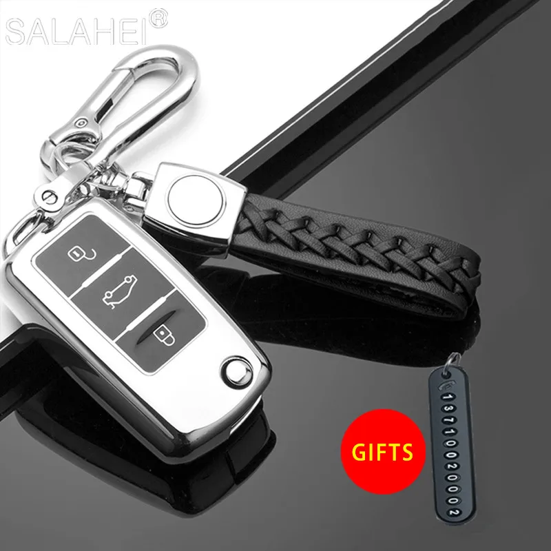 Новинка ТПУ + кожаный чехол для автомобильного ключа чехол для Volk...