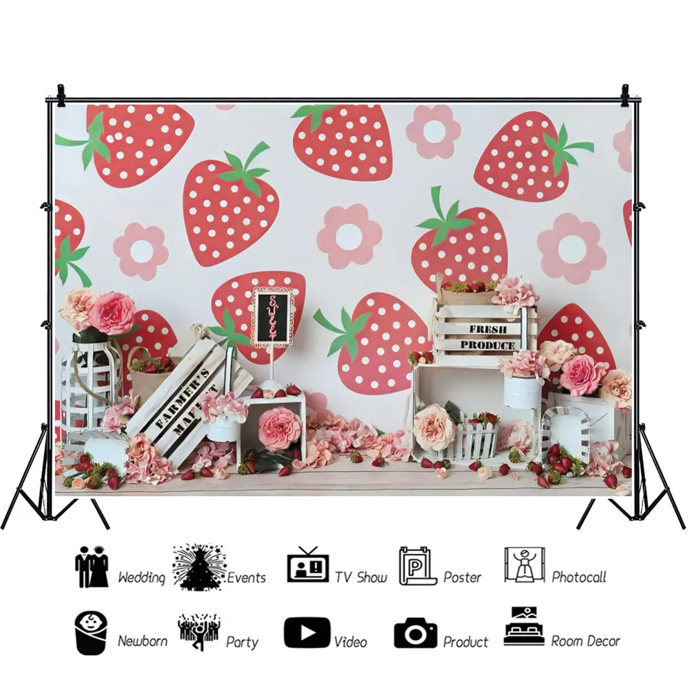 Клубника тема цветы фон для портретной фотографии день рождения фотозона Декорации для фотосъемки