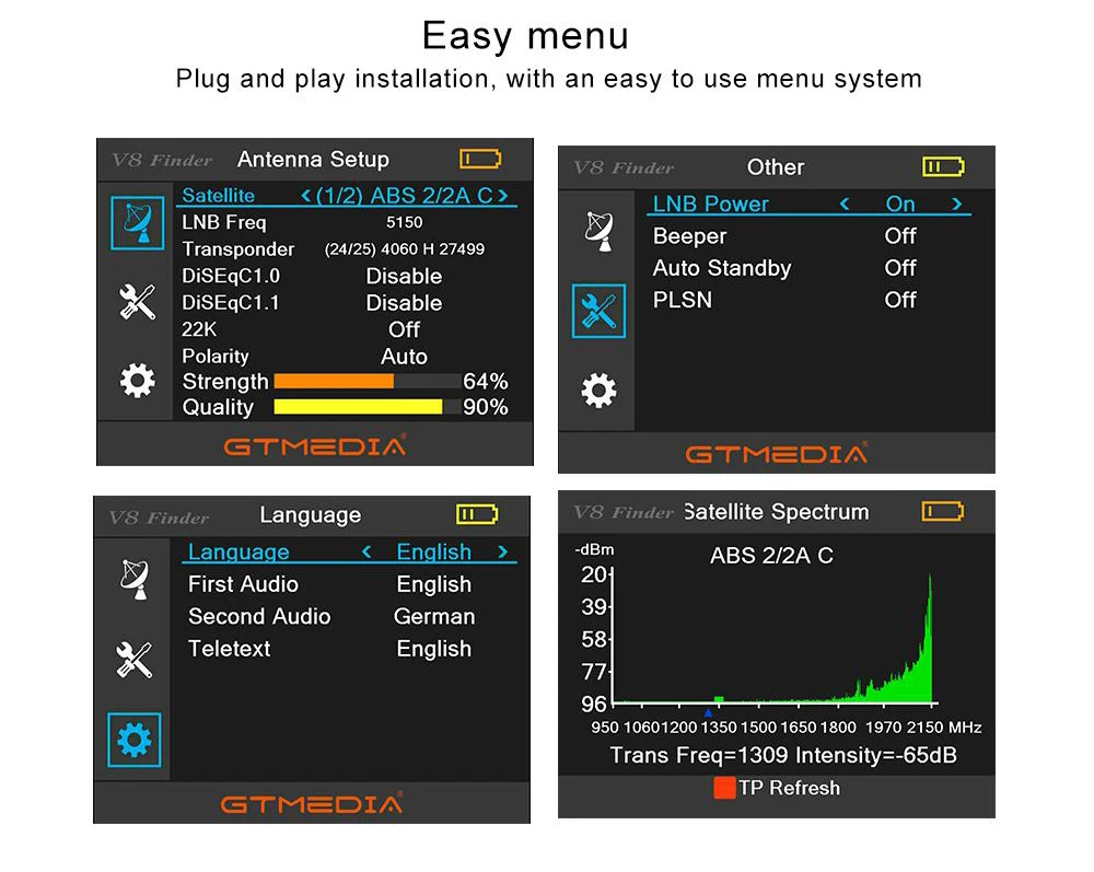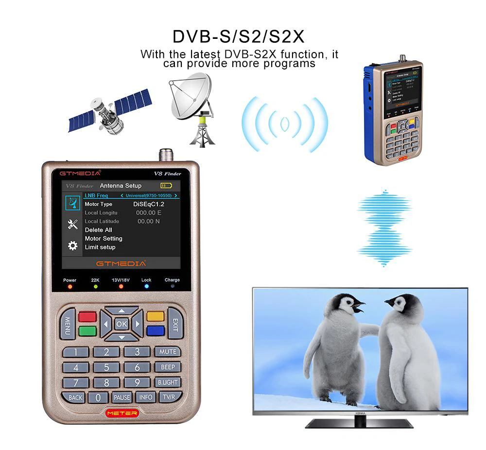 GTMEDIA Freesat V8 Finder MeterProFinder 2 мерное устройство поиска ТВ-сигналаS2S2X HD 1080P, спутниковый искатель высокой четкости