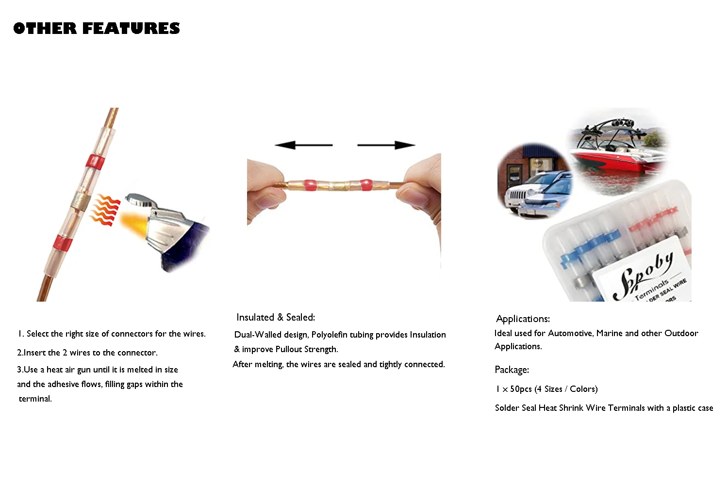 Термоусадочные клеммы с герметичным уплотнением для проводов, 102050 шт.