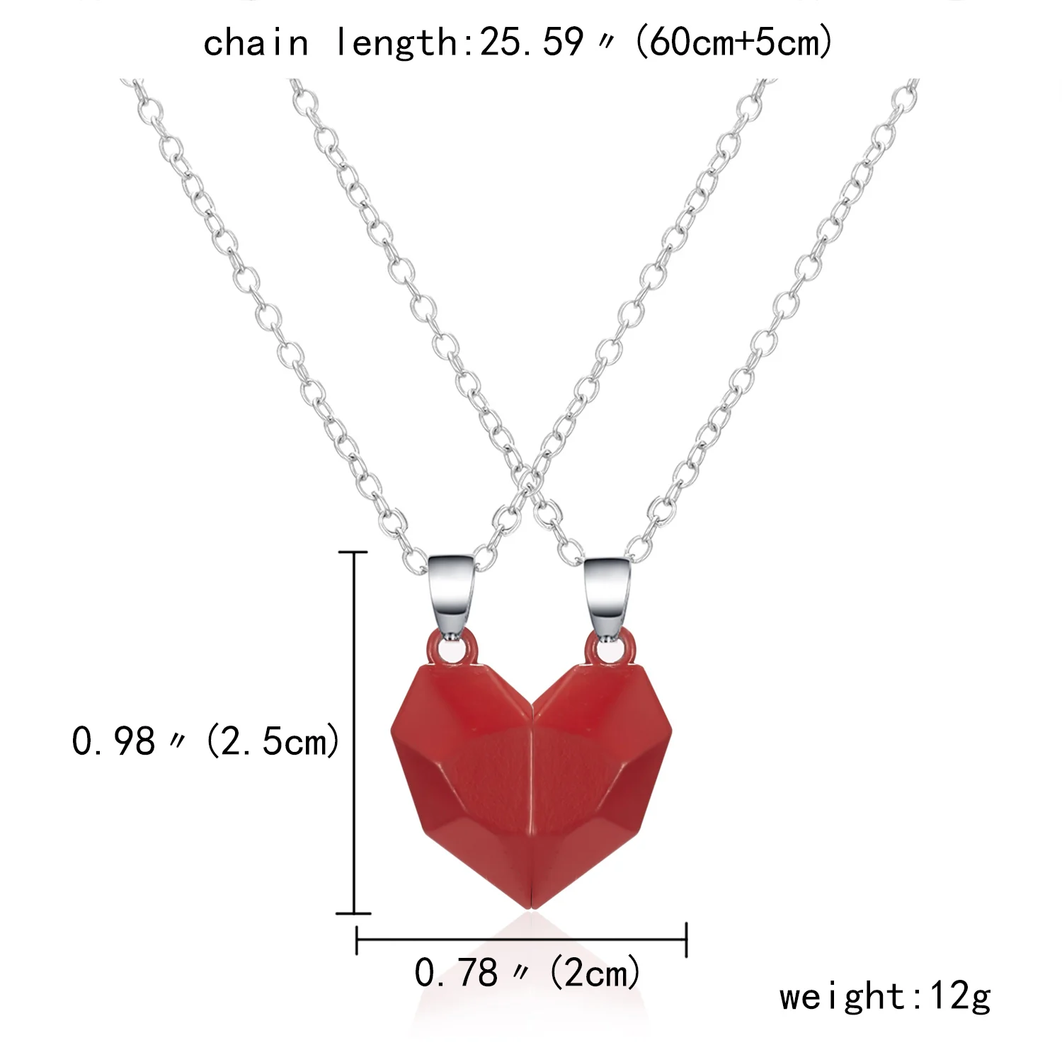 Ожерелье для пары, 2 шт.лот, магнитное ожерелье с подвеской в виде сердца дружбы, граненое, подарок на день Святого Валентина, 2021