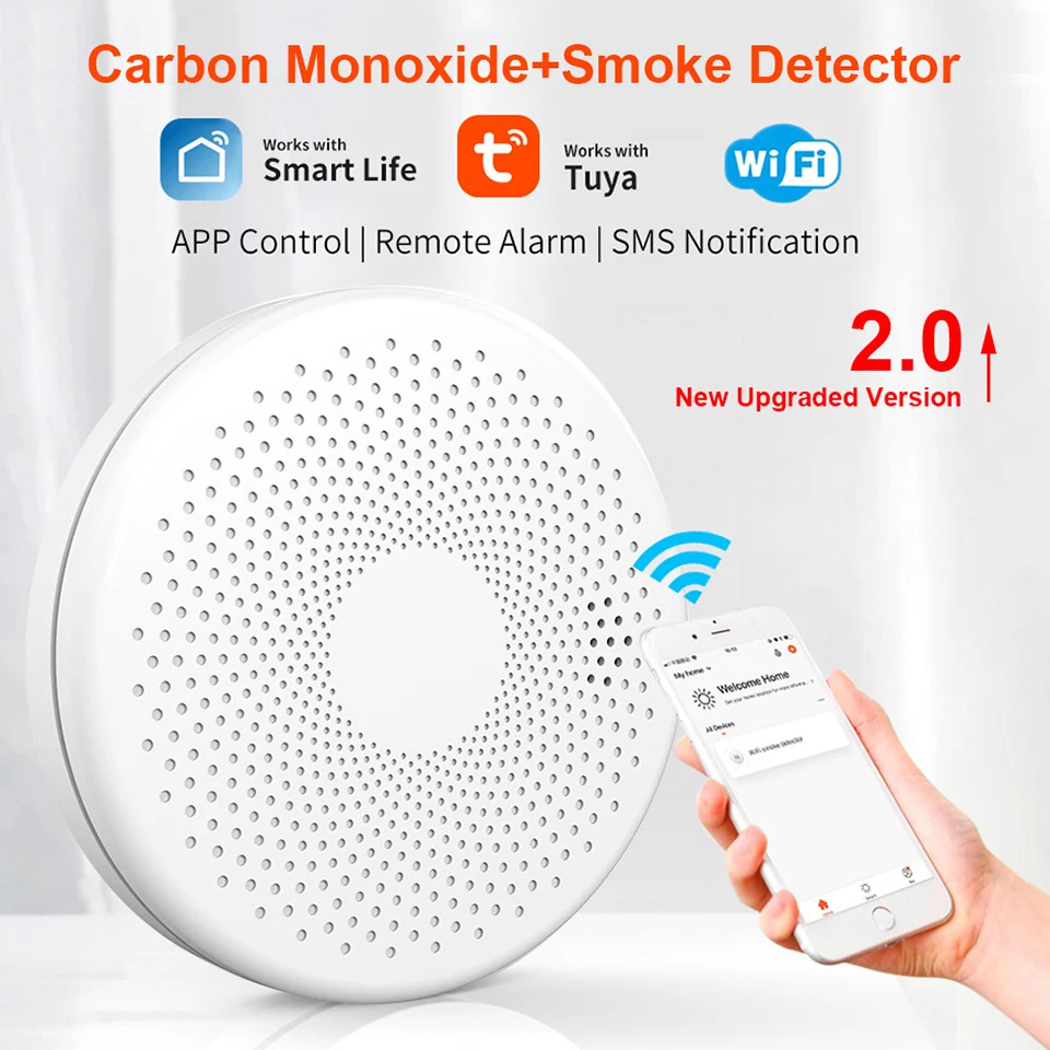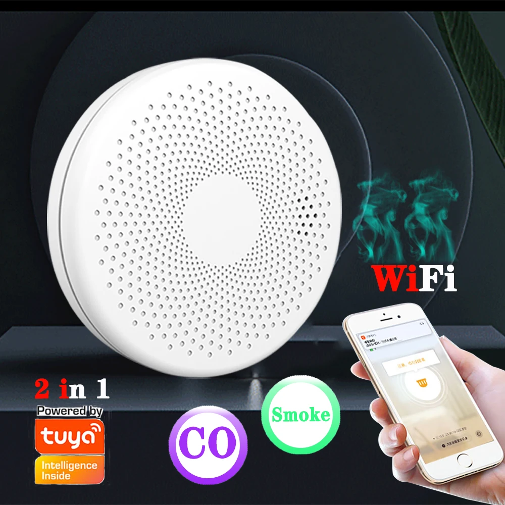 Новый ультратонкий детектор дыма Tuya Wi-Fi, датчик угарного газа CO 2 в 1, пожарная сигнализация на 360 , домашняя защита, высокая чувствительность