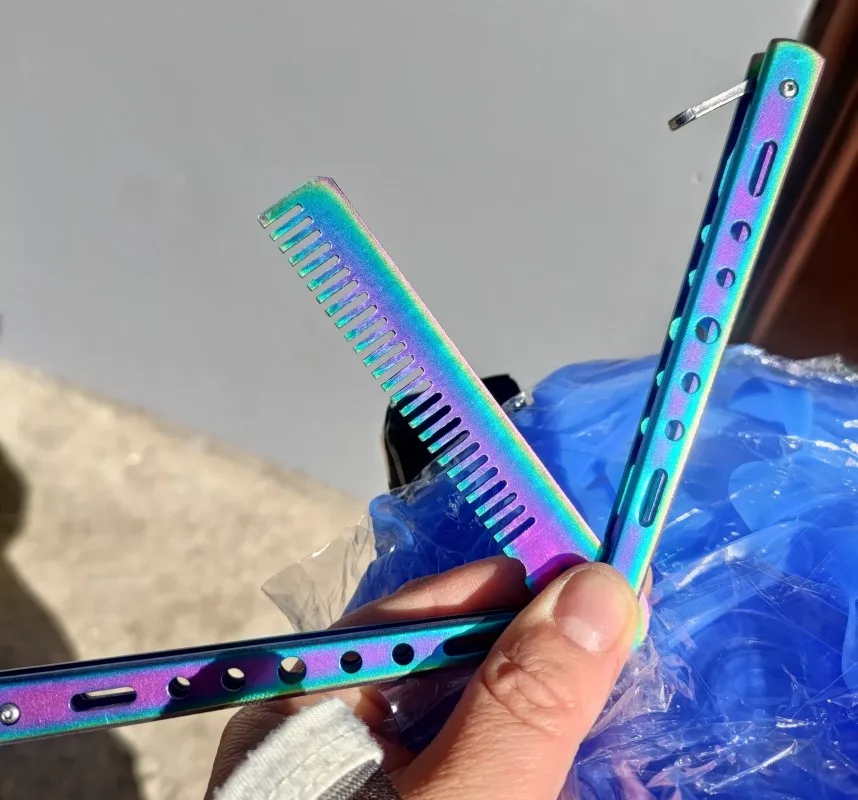 Складной нож гребень с бабочкой из нержавеющей стали, тренировочная расческа для бороды и усов, инструмент для укладки волос, цвет