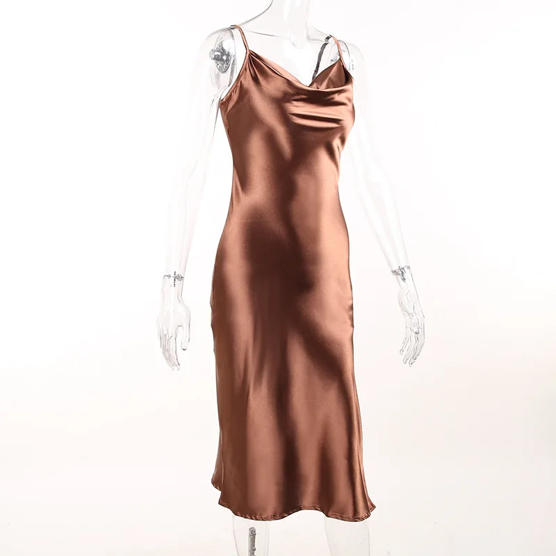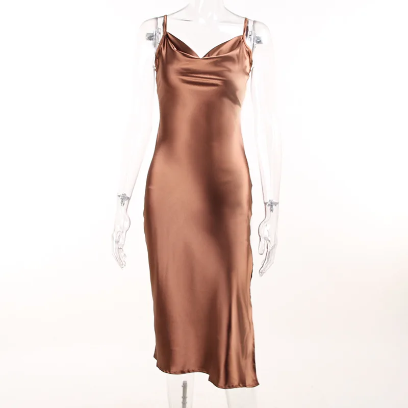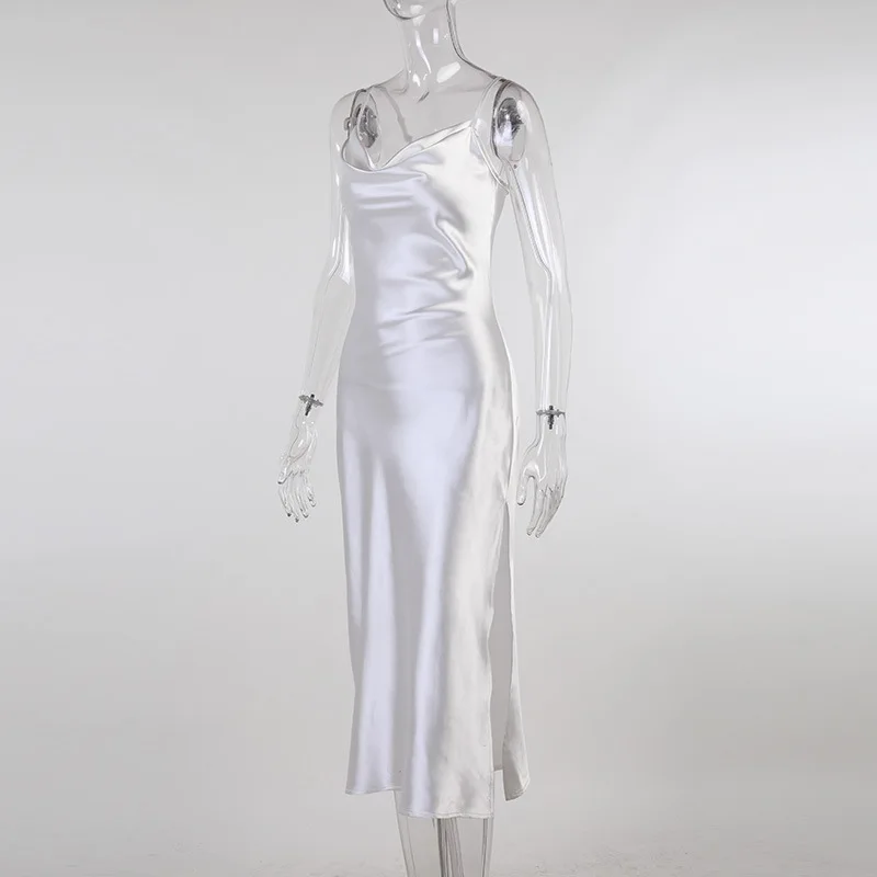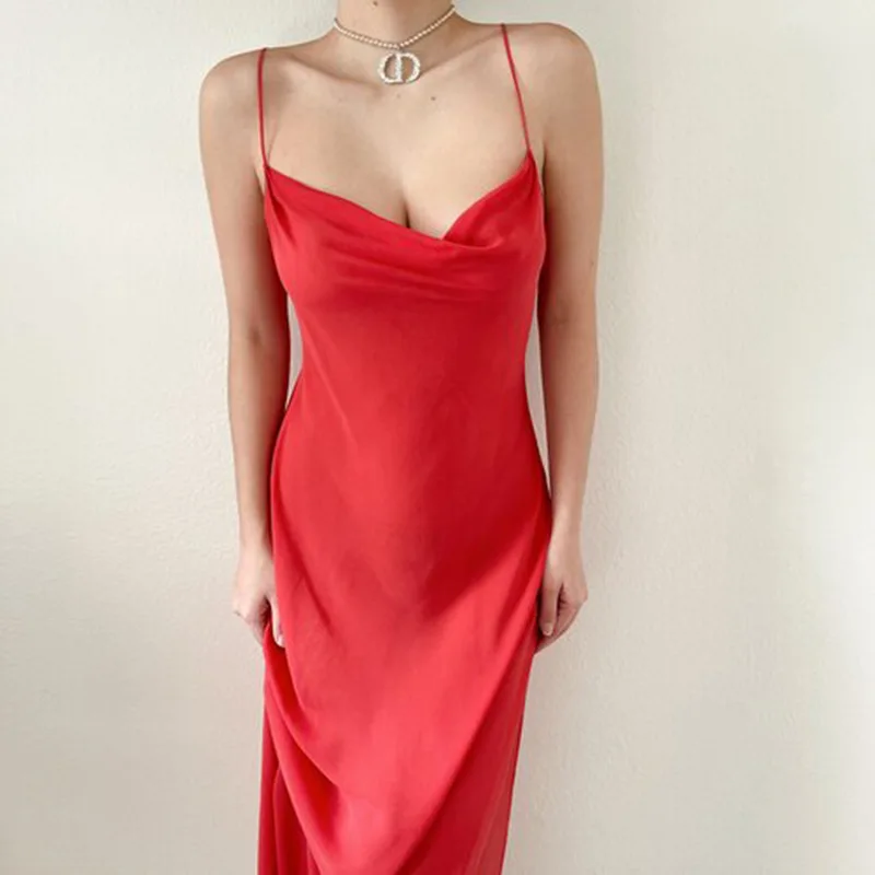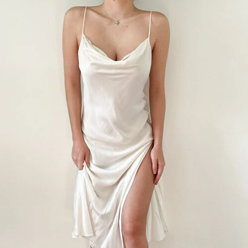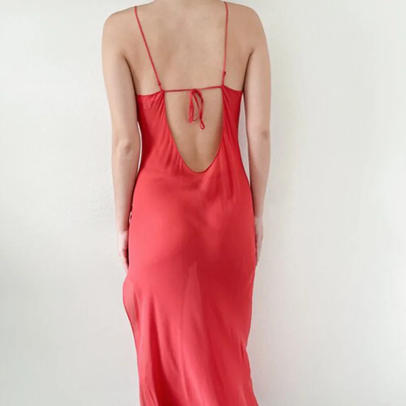 Слинг Атлас к повседневному платью Женские топы с открытой спиной высокого платье с разрезом для выпускного вечера Спагетти ремень элегантные вечерние платья модное платье