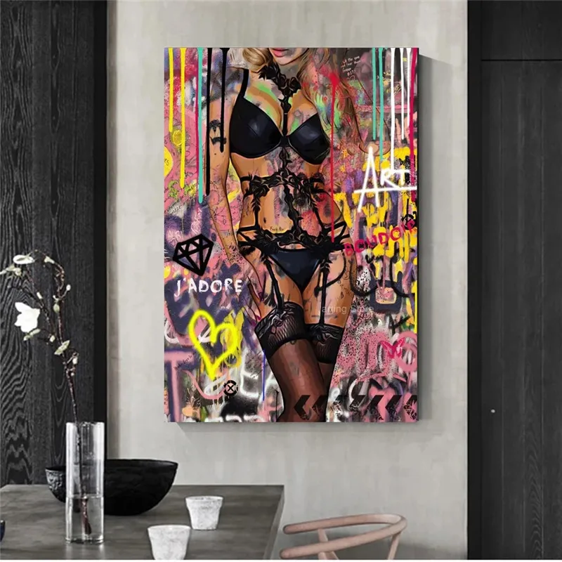 Картина на холсте с изображением сексуальной девушки, черная проволока, Женский плакат и принт, современная картина на стену для гостиной, бара, домашний декор, без рамки