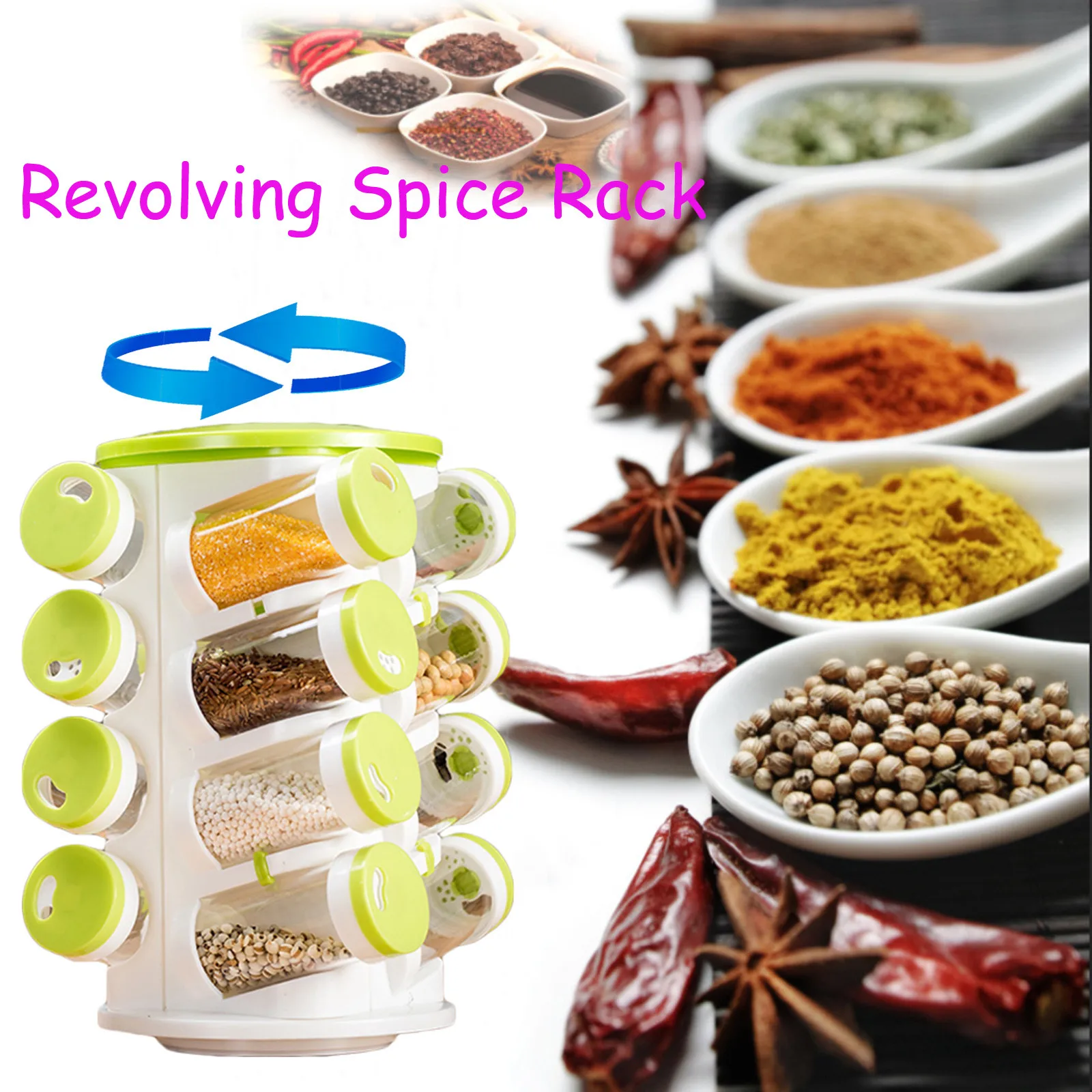 Набор из 16 предметов, набор для приправ 360 Вращающийся специй стойка для банок кухонный графинчик приправы пластиковые Кофе сахара печать Jar Контейнер Шкаф Кухня uten