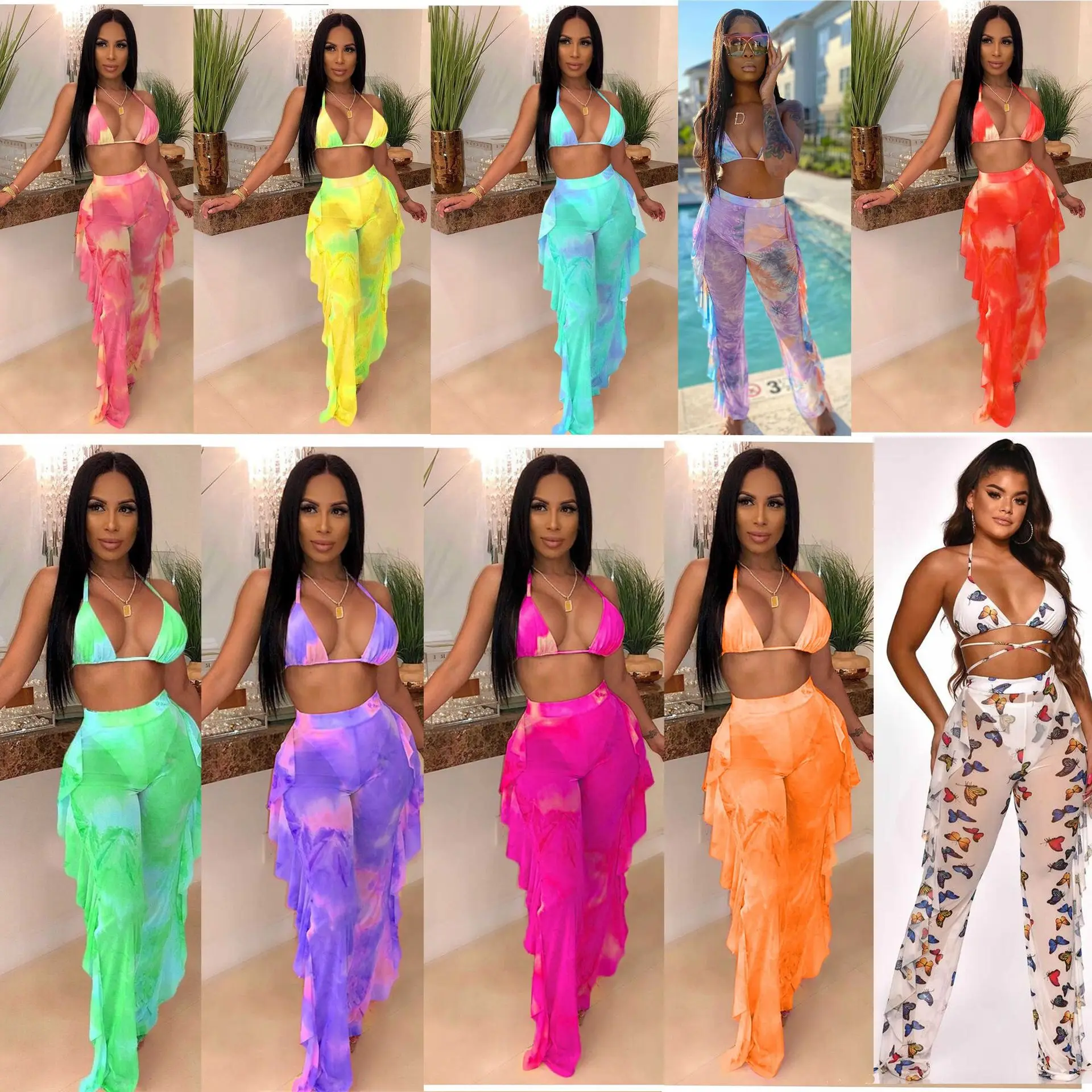 Повседневный женский купальник, комплект из двух предметов, короткий топ + длинные брюки, Летний Пляжный Купальник для женщин