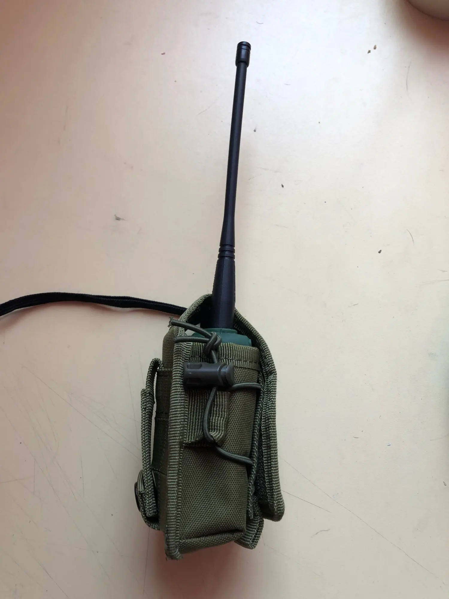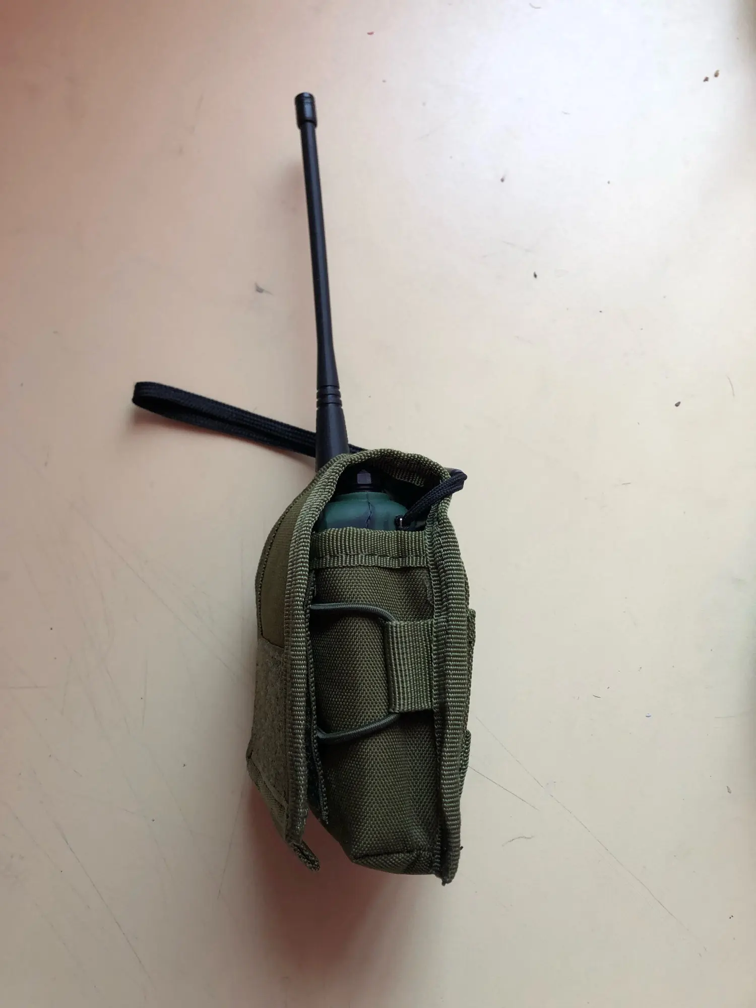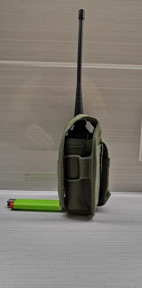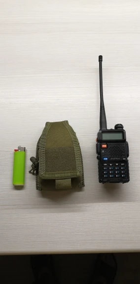 Подсумок качественный, кордура плотная, форму держит. На фото радиостанция Баофенг УВ 5Р с прищепкой. Сидит плотно, так, что при активном радиообмене, вставлять - доставать не удобно. Сидит достаточно глубоко. Для транспортировки нормально.