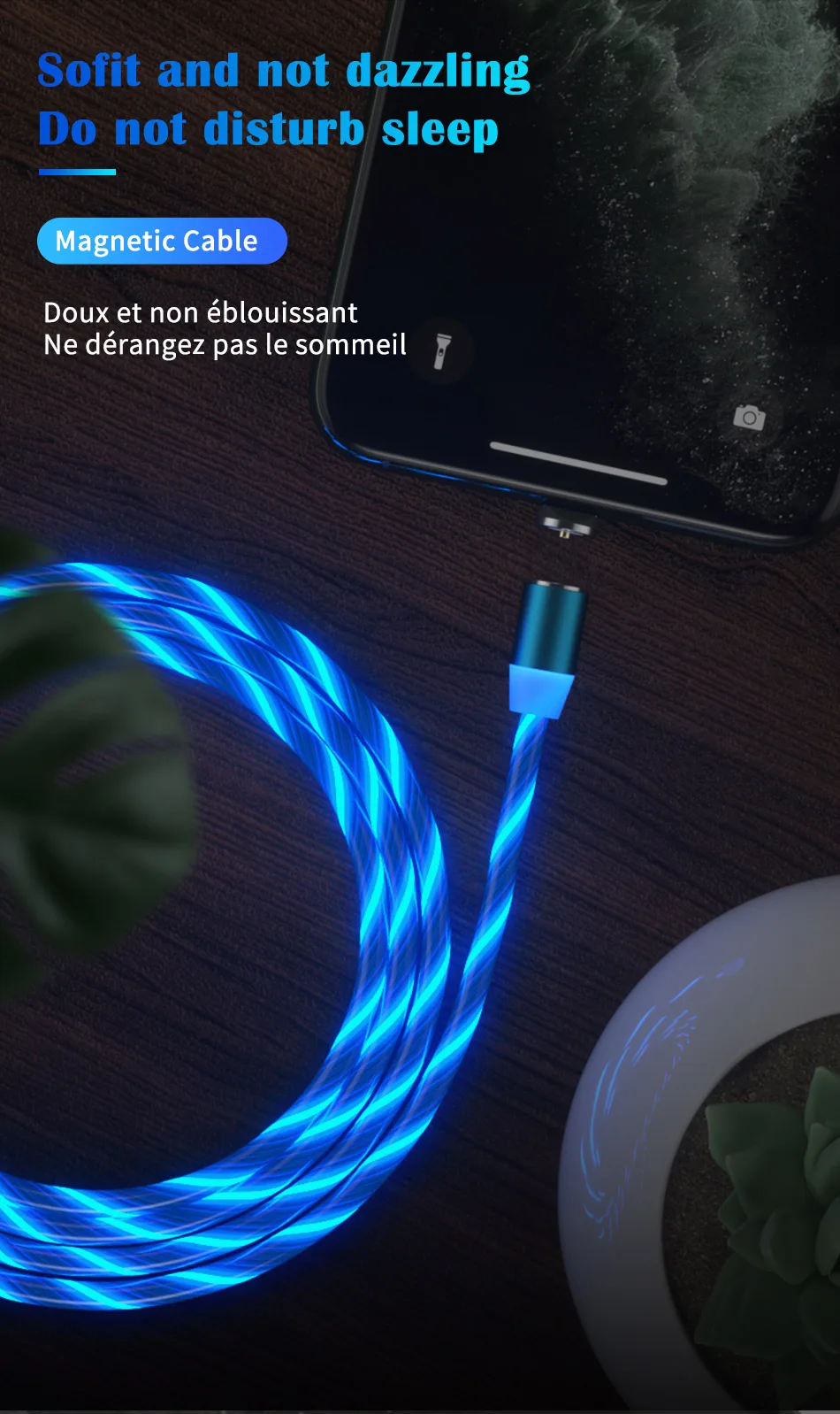 Магнитный USB-кабель Ottwn с подсветкой для Iphone, Samsung, Xiaomi