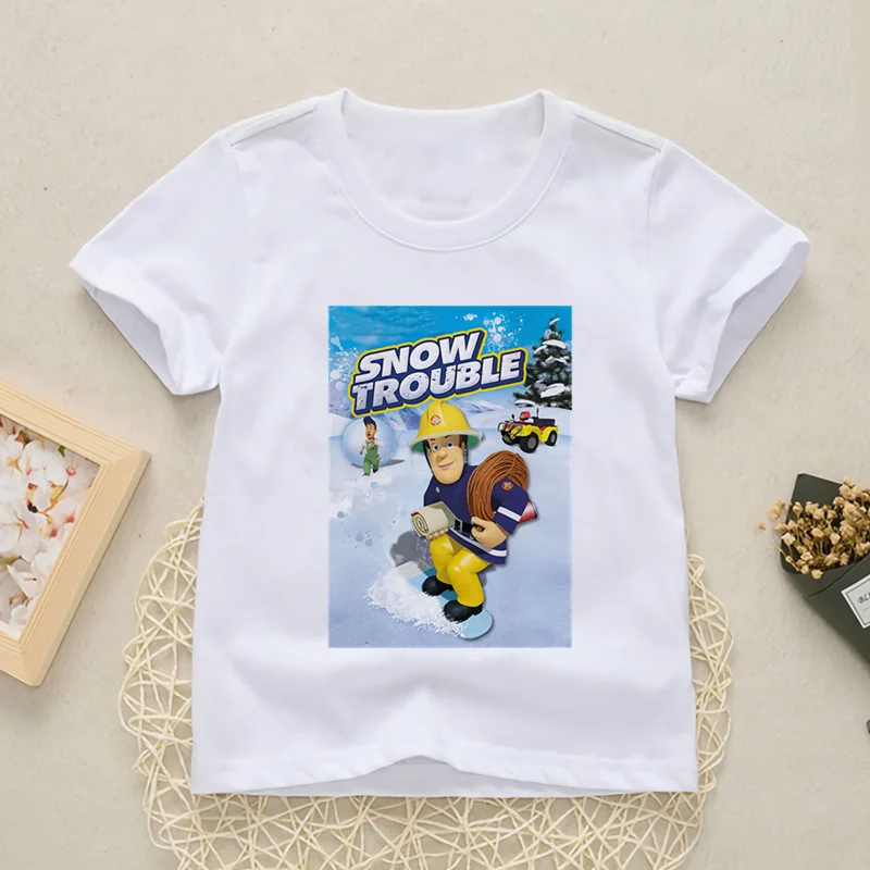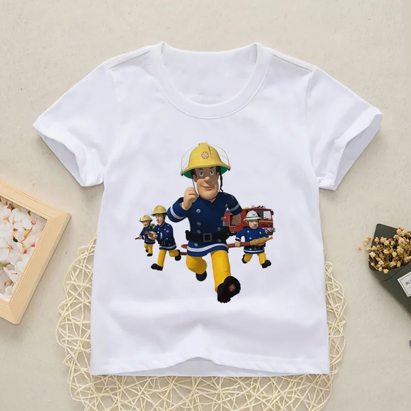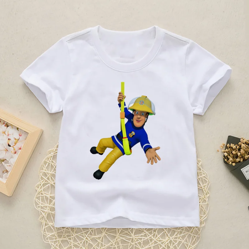 Детская забавная футболка с рисунком пожарного Сэма, Детская летняя модная одежда, топы, Повседневная футболка для маленьких девочек и мальчиков, YKP010
