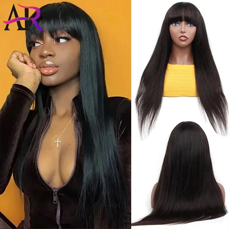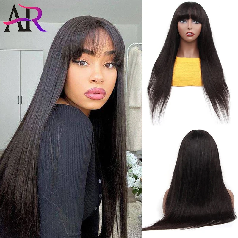 Парик из человеческих волос A R с челкой, Короткие парики из человеческих волос Боб для черных женщин, дешевые бразильские прямые черные парики с длинной бахромой 30 дюймов