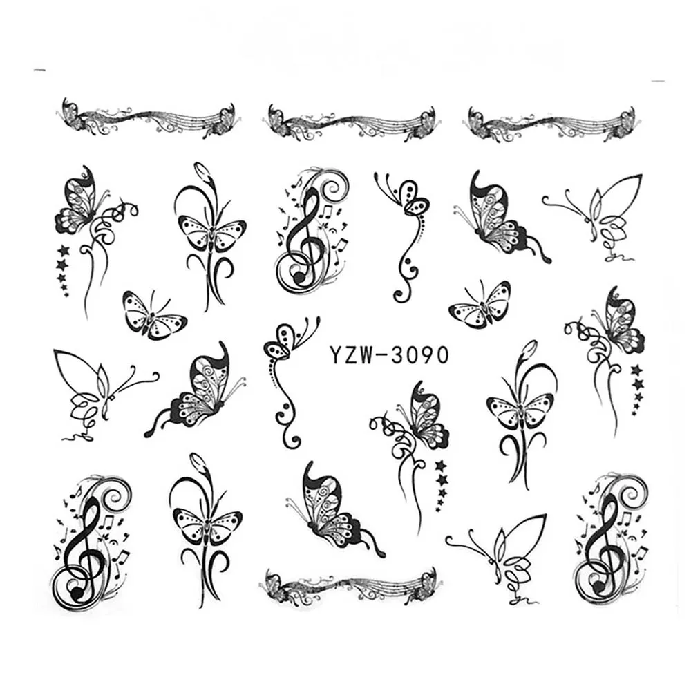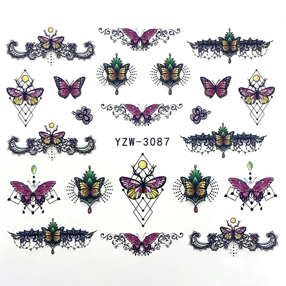 Водные переводные наклейки, цветы, красочные наклейки для ногтей, вишневые цветы, стикеры для фламинго, животных, розы, бабочки, водяные знаки