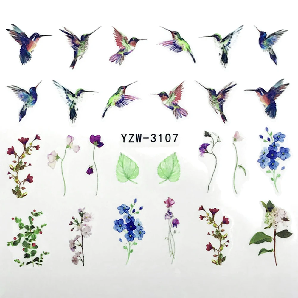 Водяные наклейки цветы красочные наклейки для ногтей s вишни водяные наклейки для ногтей наклейки Фламинго животные Роза бабочка водяной знак