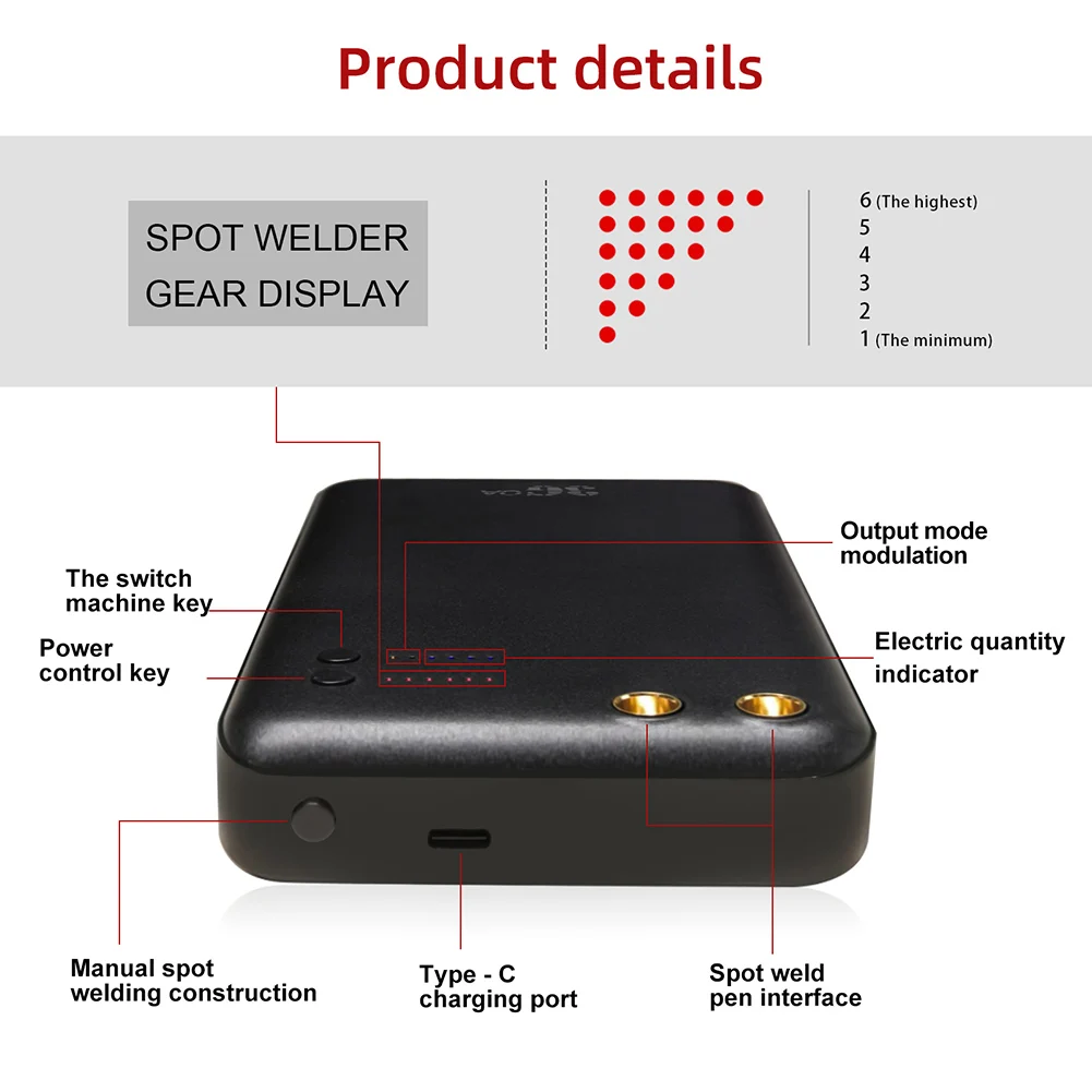 Портативный 6-Скоростной Регулируемый мини-аппарат для точечной сварки с батареей 18650, набор инструментов для точечной сварки сделай сам, перезаряжаемый точечный сварочный аппарат